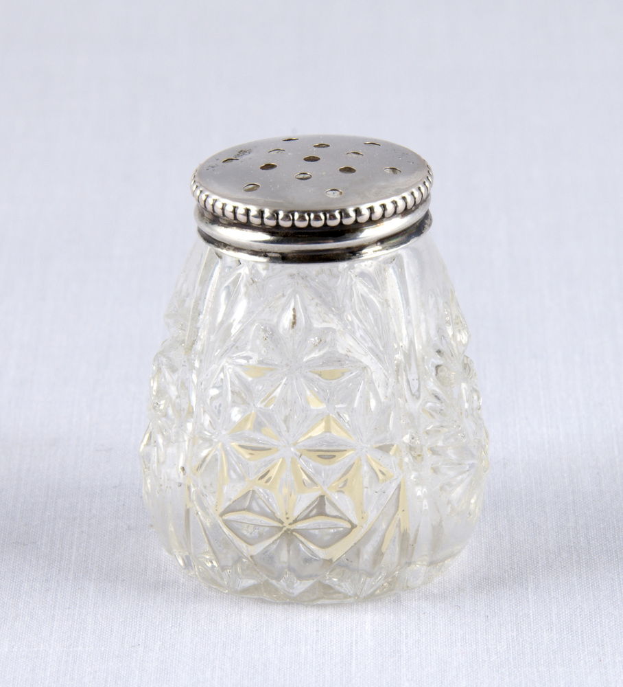 Zoutstrooier van glas met zilveren dop, 19e eeuw, we...