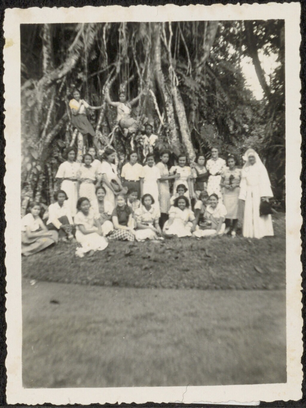 Groepsportret van lerares met haar leerlingen
