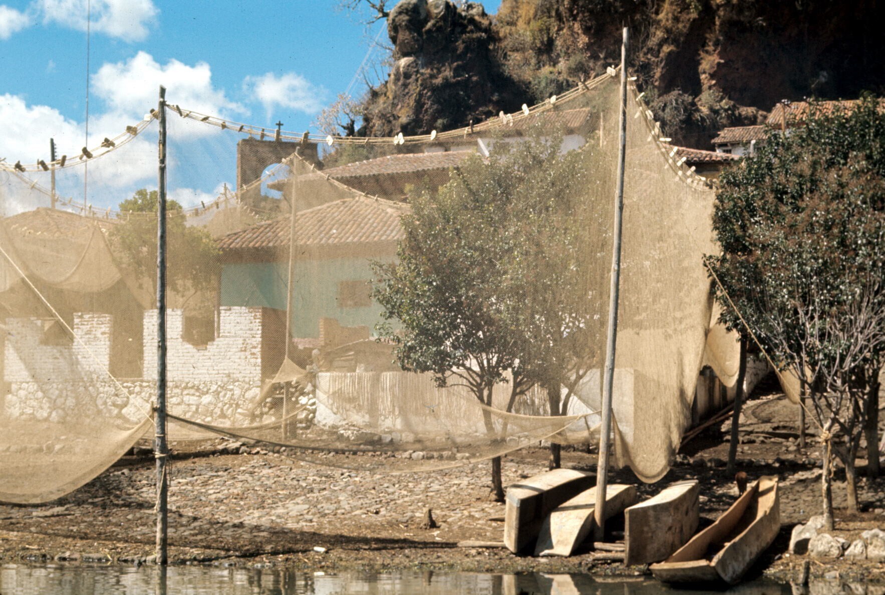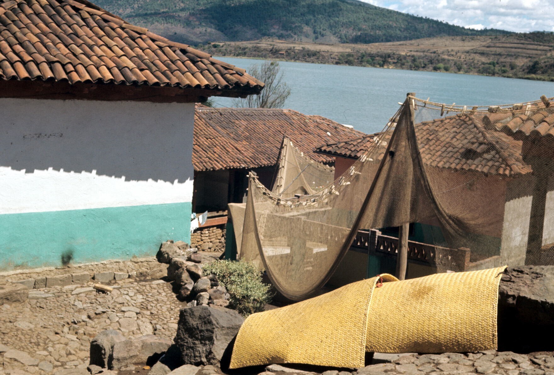 hoekje in het dorp, met visnetten en matten
