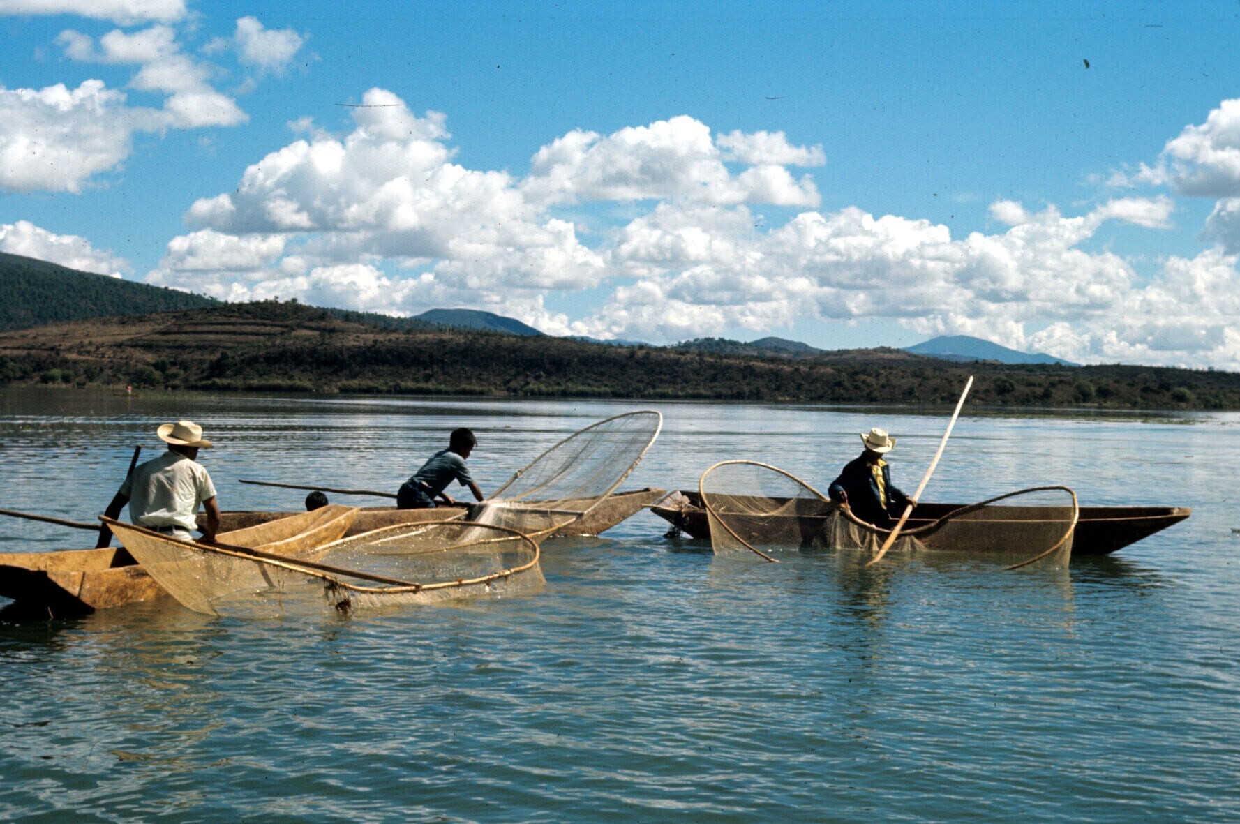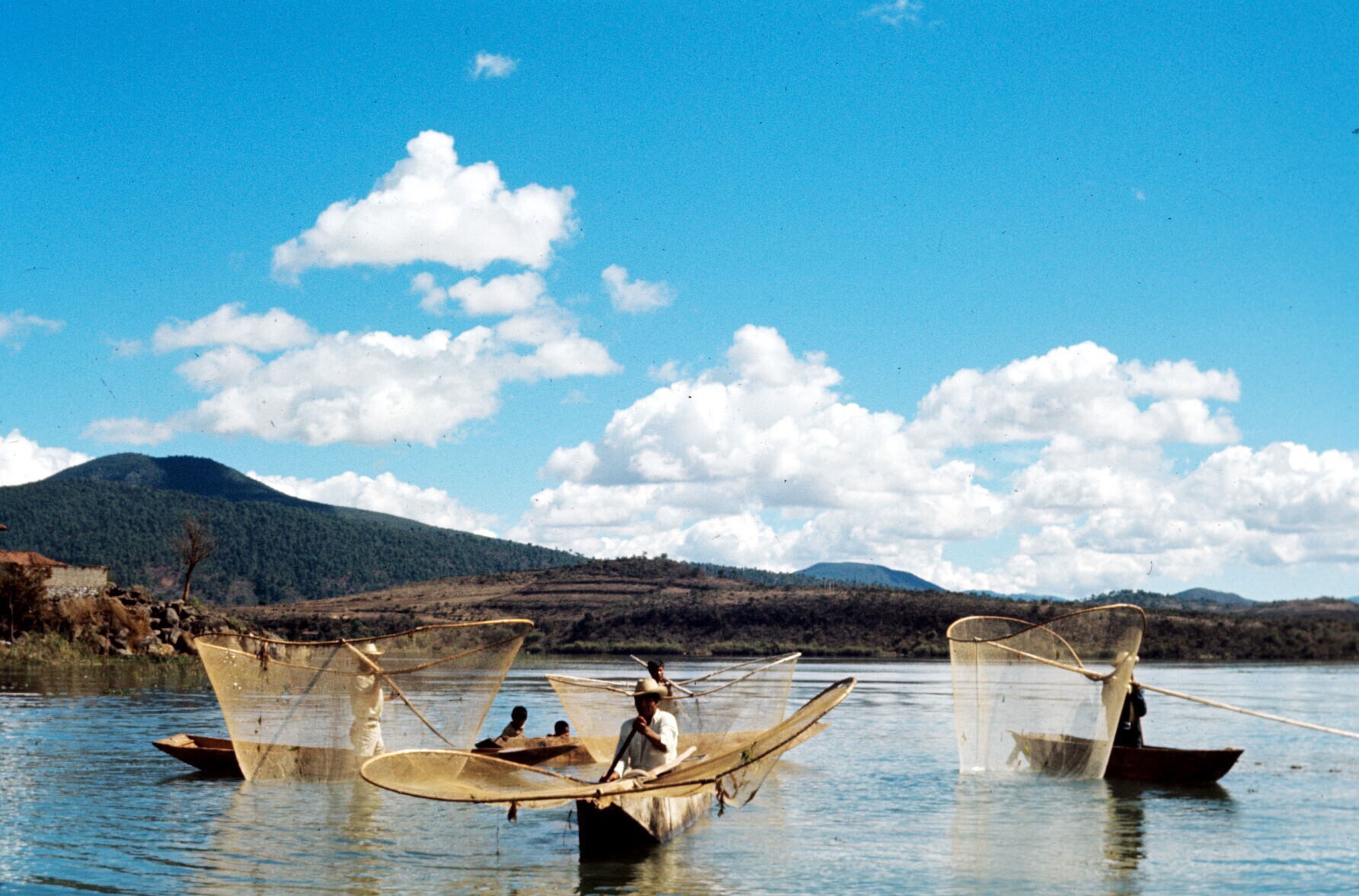vissers, vissend met traditionele netten op meer van...