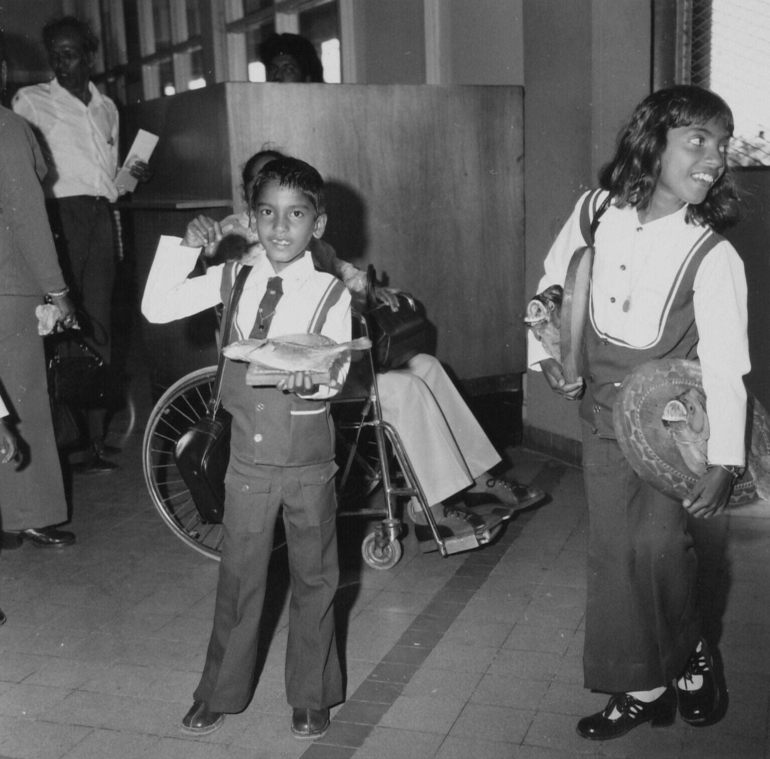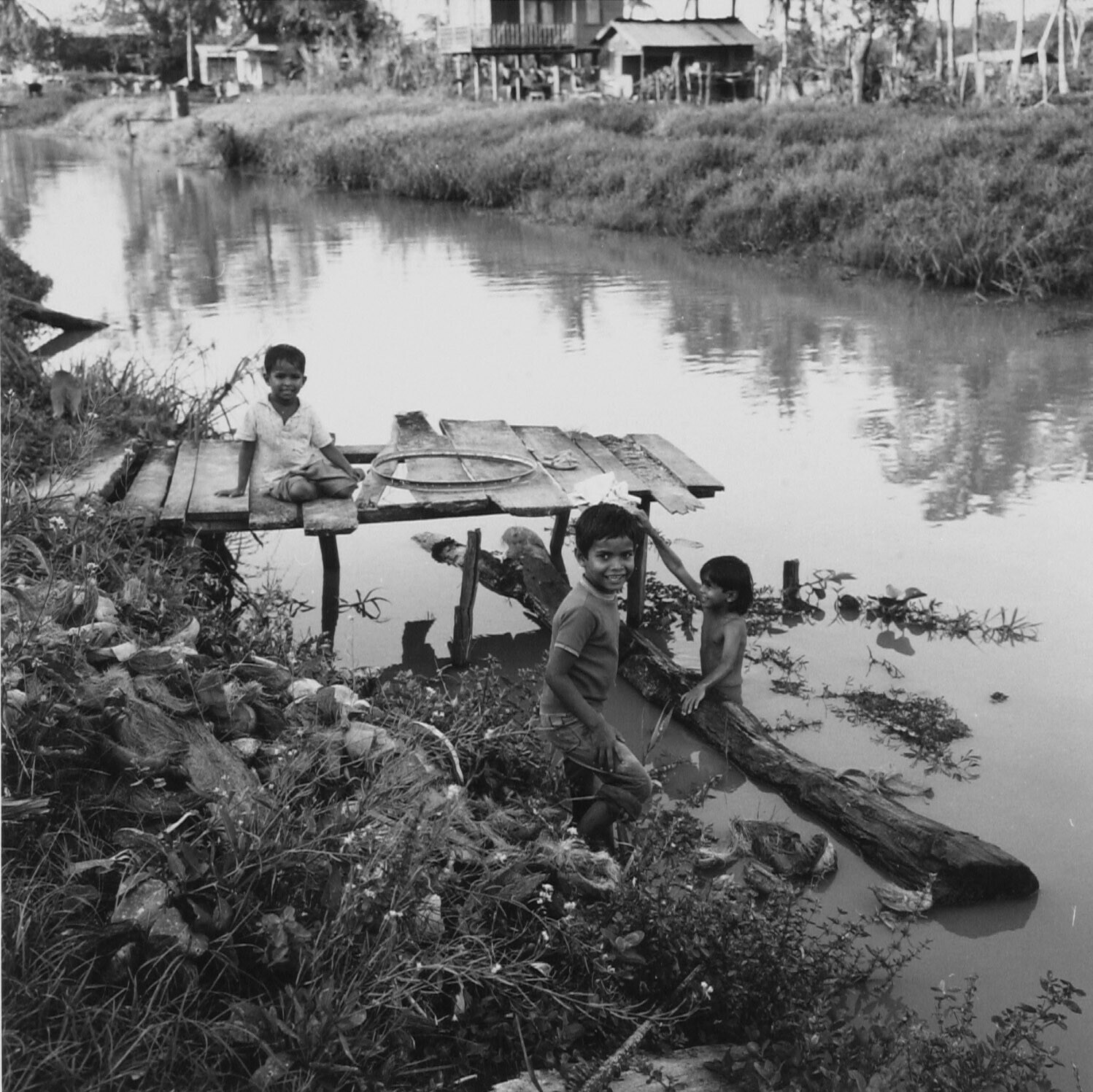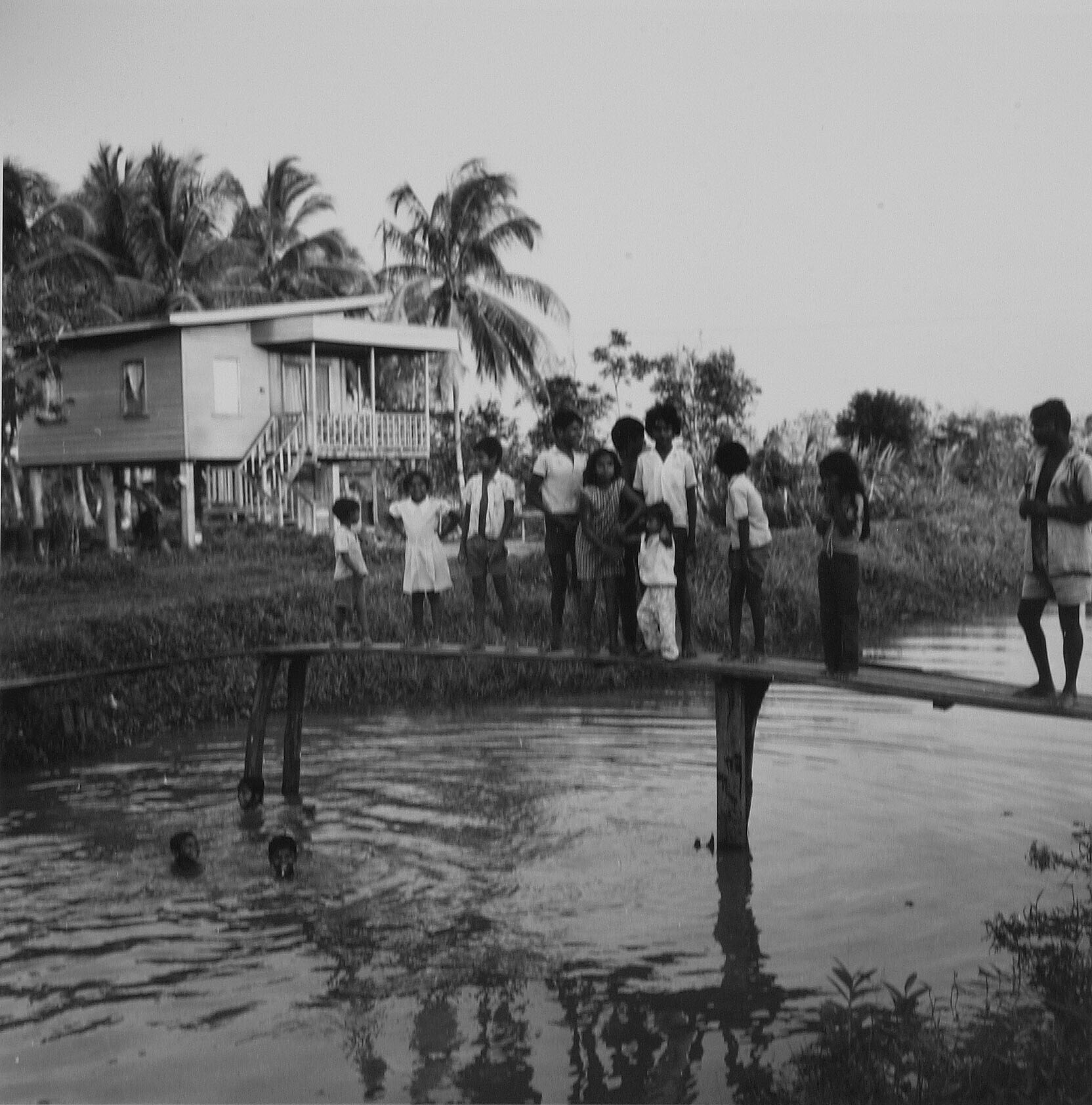 Hindoestaanse kinderen aan Leiding 16,op de achtergr...