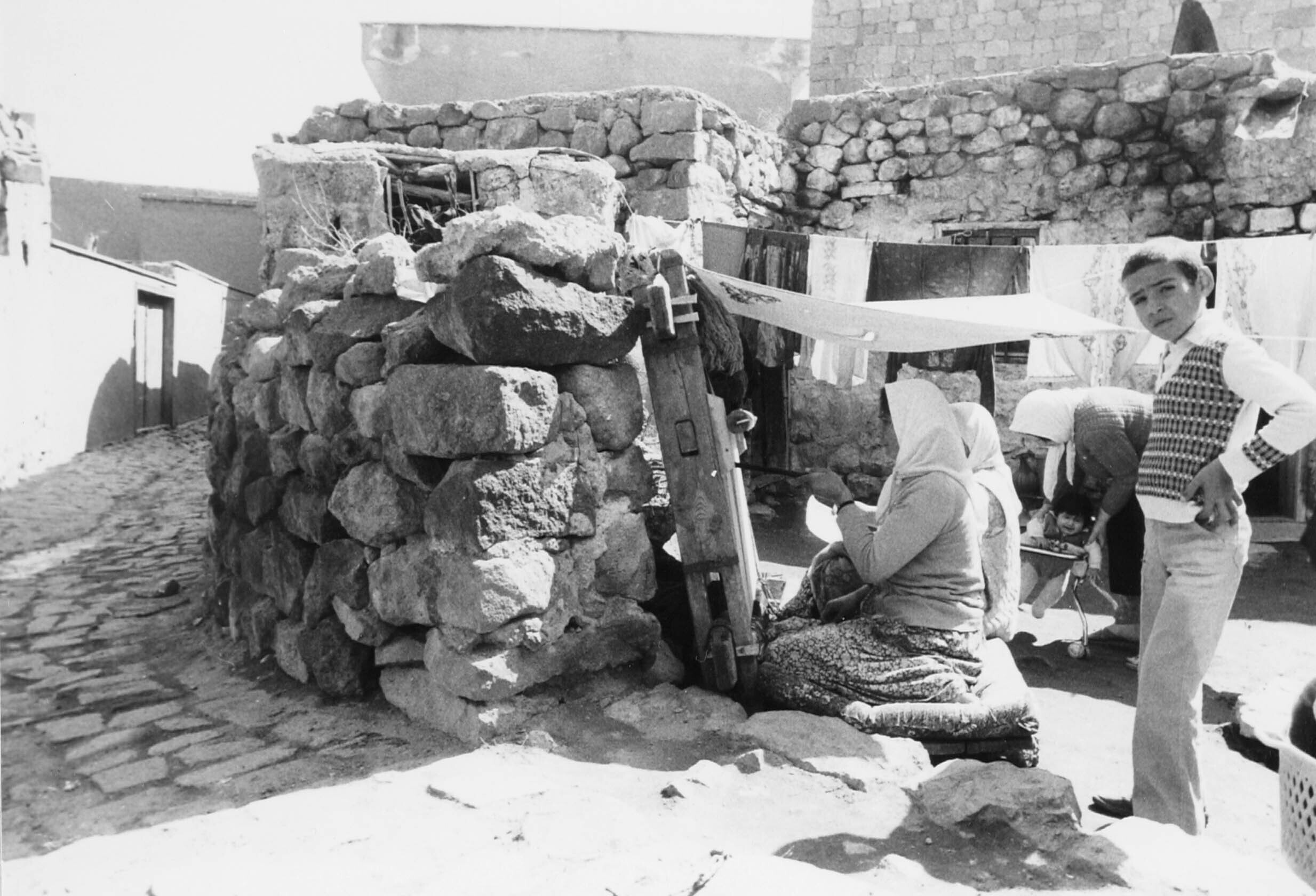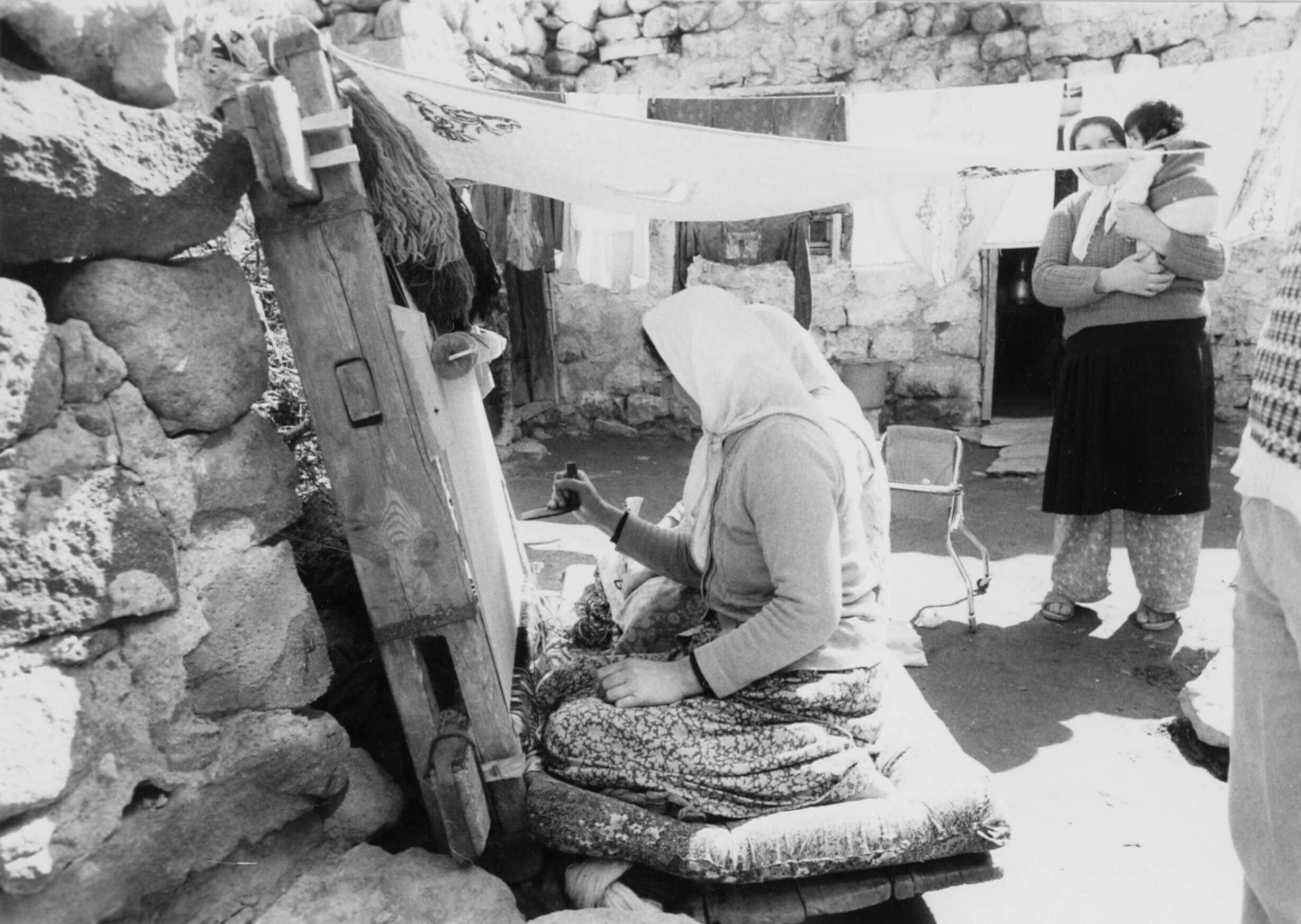 Hacilar. Vrouwen die een tapijt zitten te knopen in ...