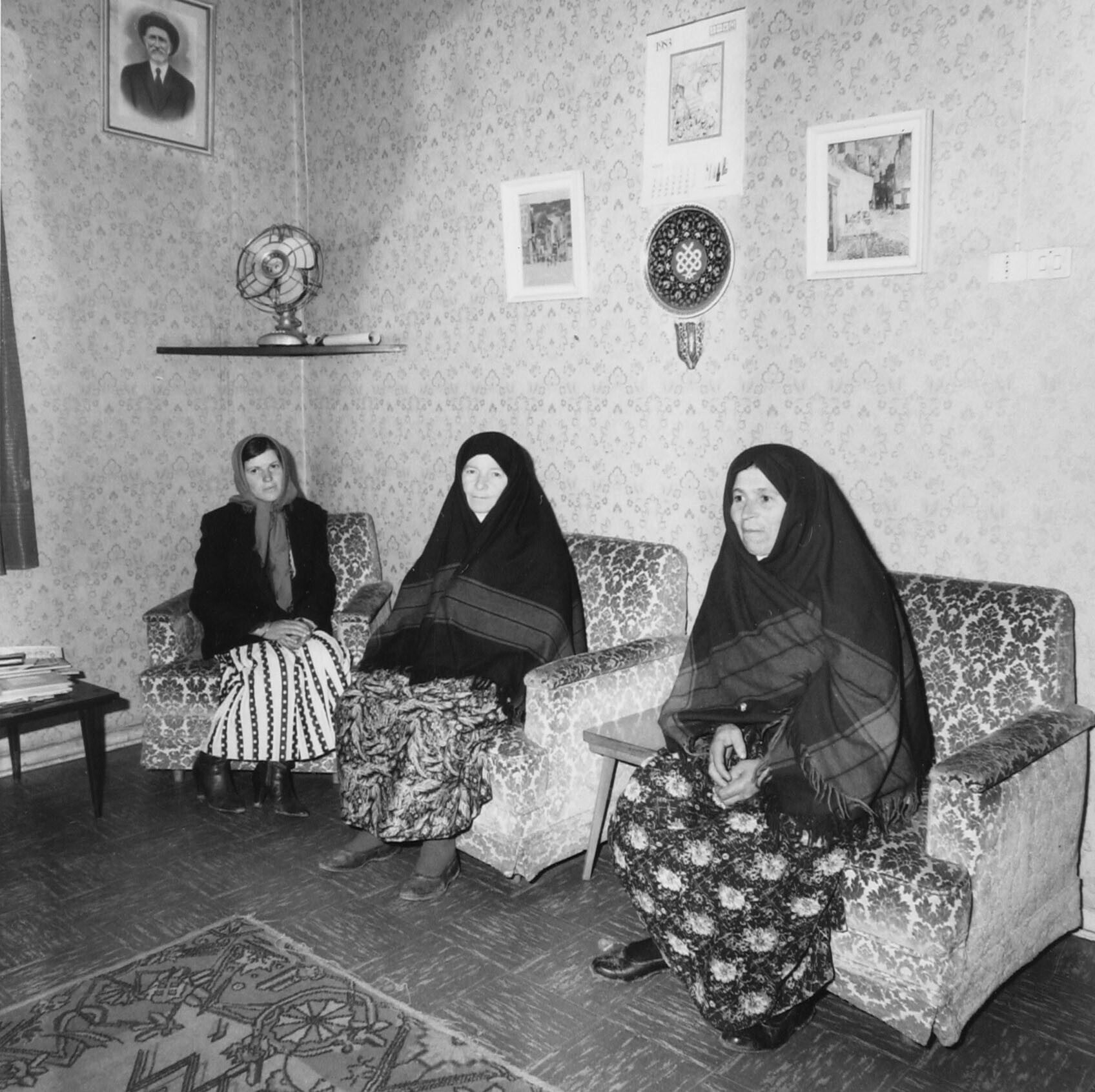 Hacilar. Vrouwen die een tapijt zitten te knopen
