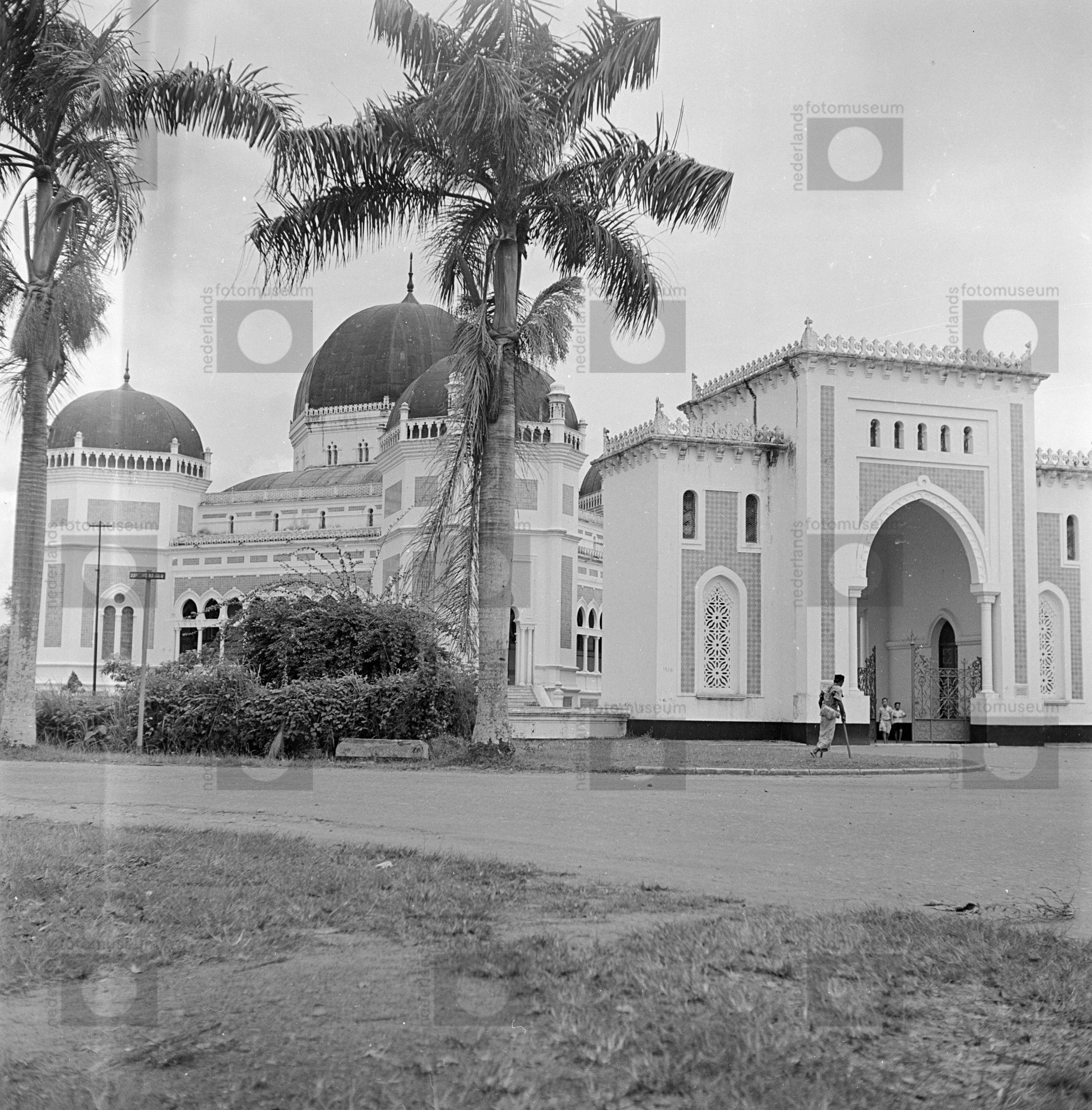 Overhoeks aanzicht van de Masjid Raya, oftewel Grote...