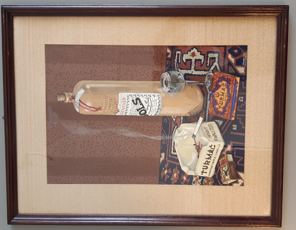 Stilleven op papier in een lijst van hout van een ta...