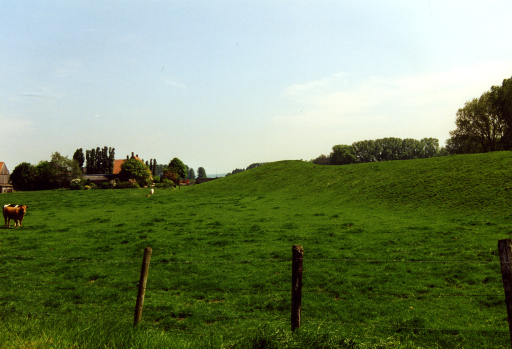 Kleurenfoto van een bult in de dijk achter de Mariah...