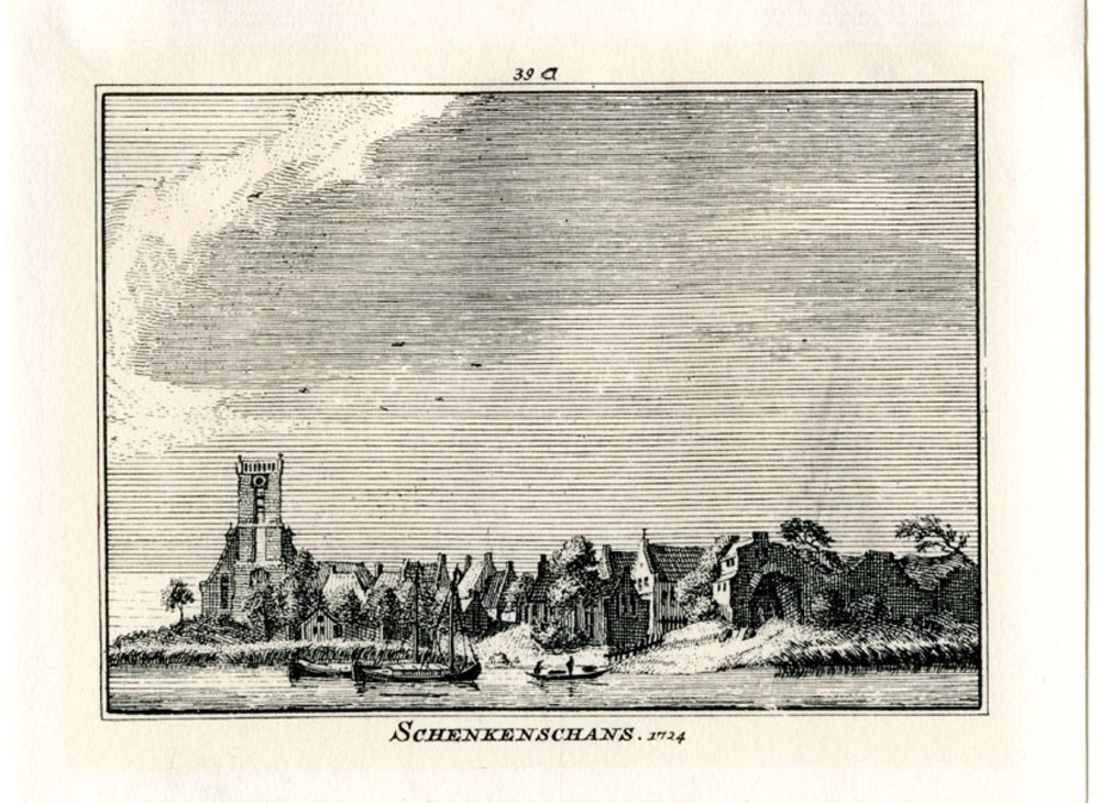 Gravure met afbeelding van Schenkenschans op papier ...