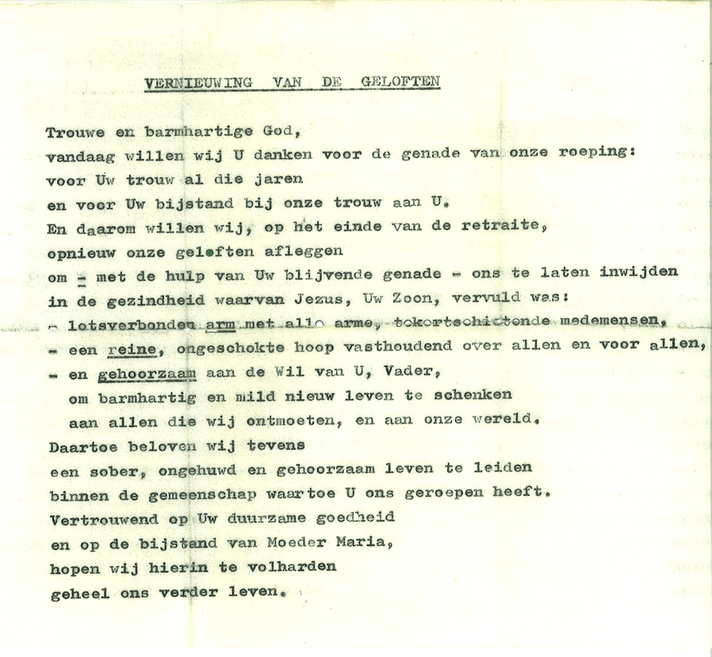 Afschrift op papier van de vernieuwing van de geloft...