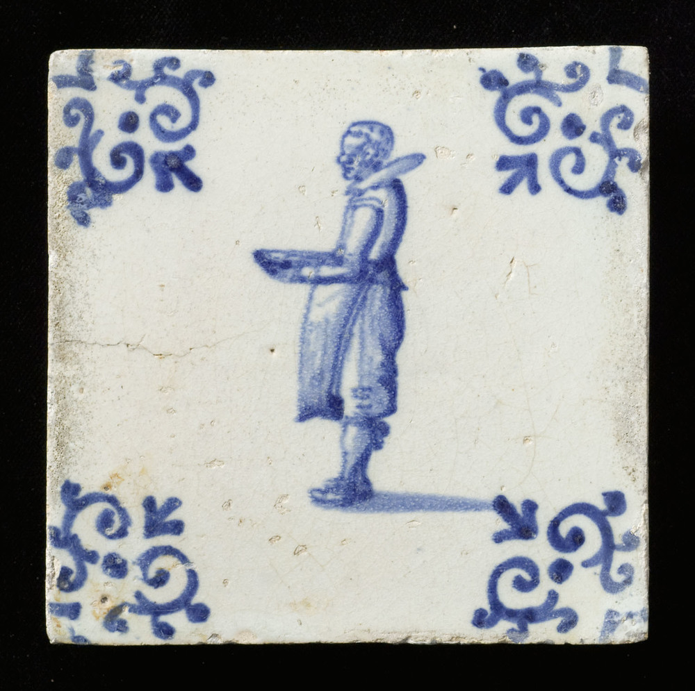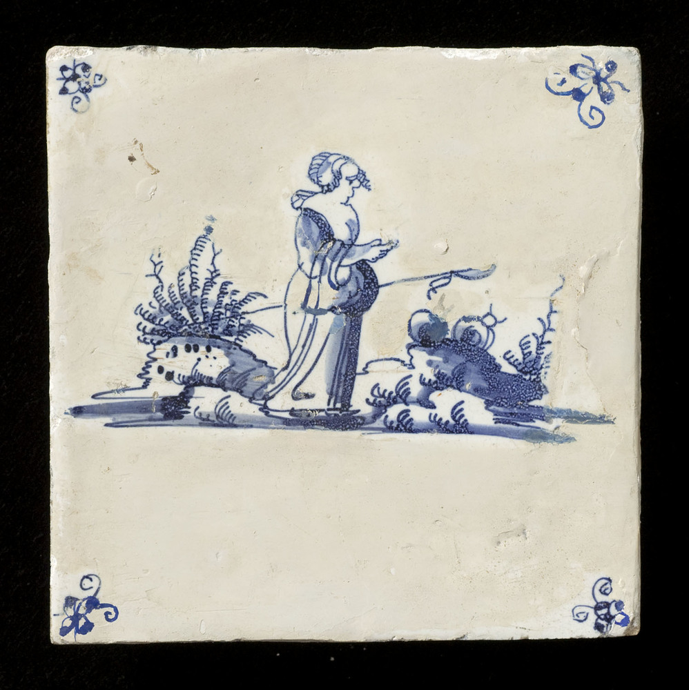 Tegel van keramiek met tinglazuur, voorstellende: Su...