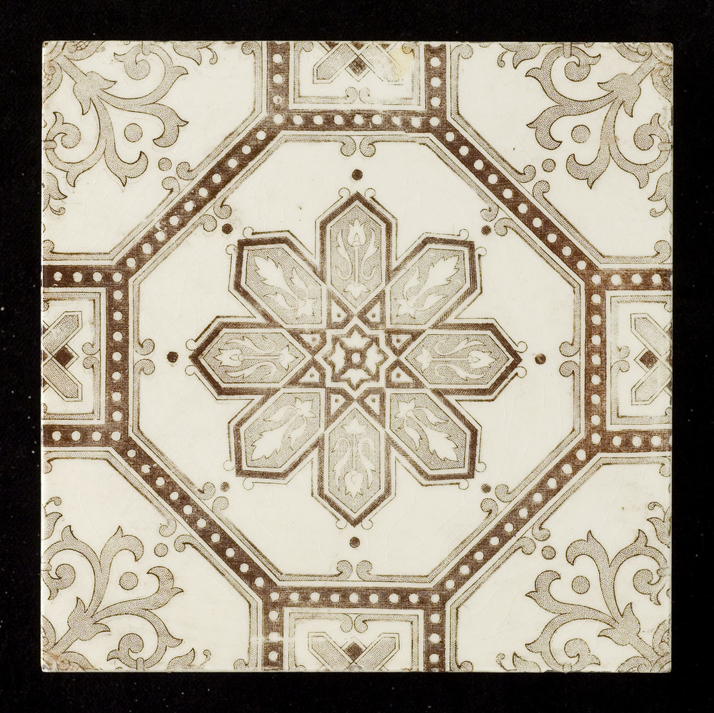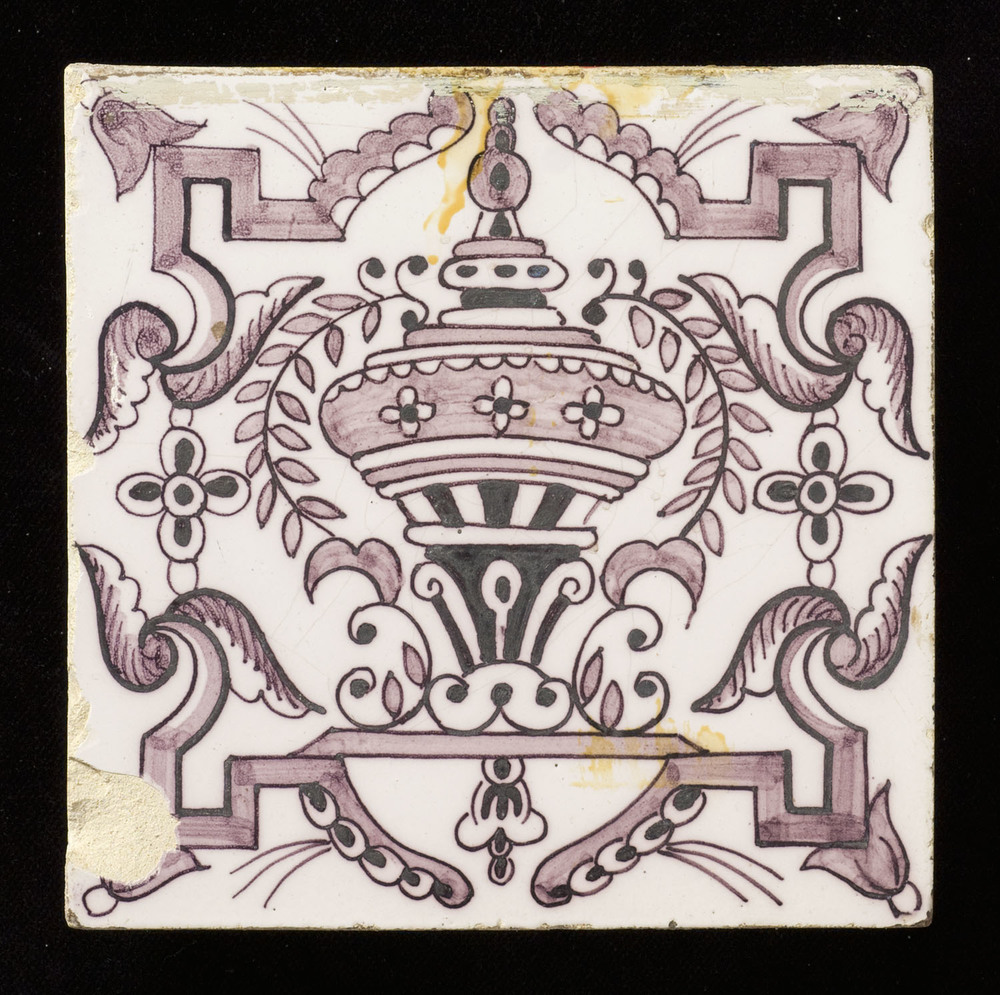 Tegel in transfertechniek, met voorstelling: ornamen...