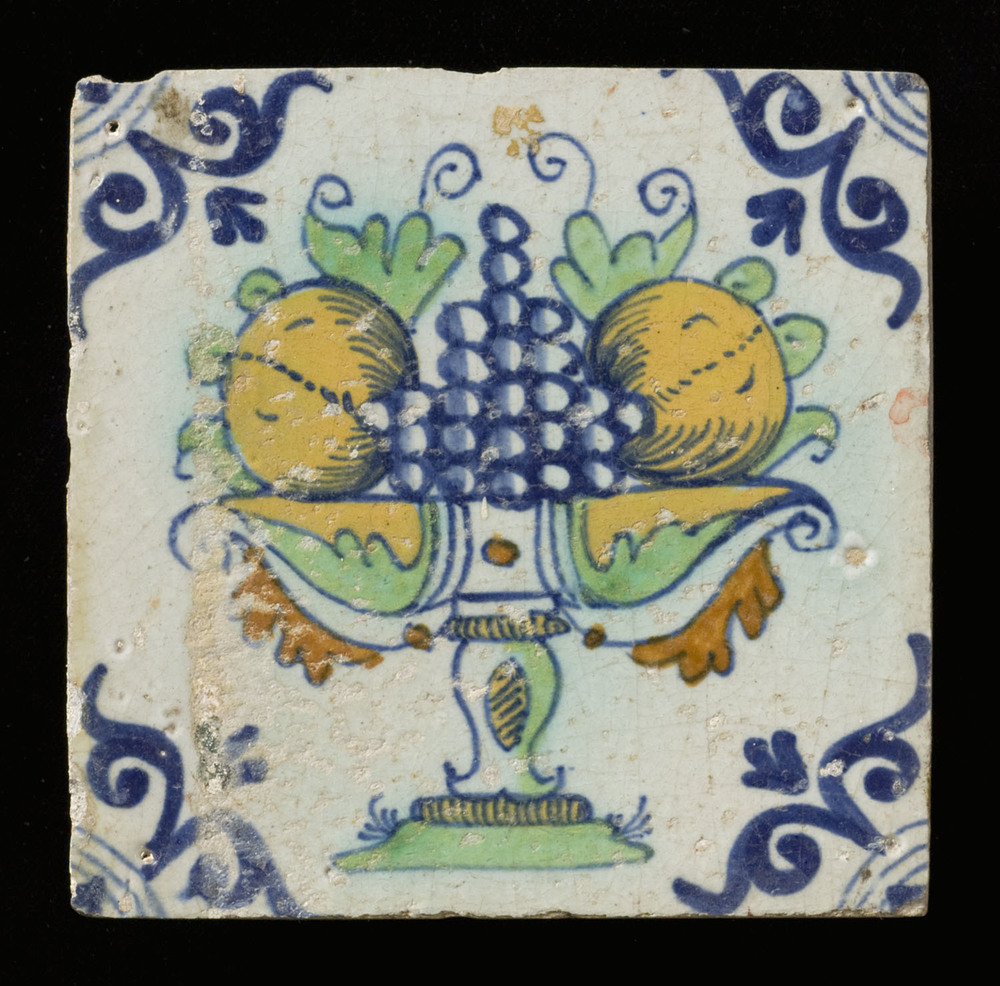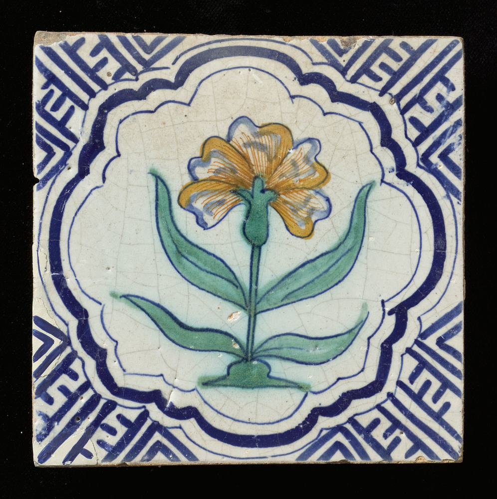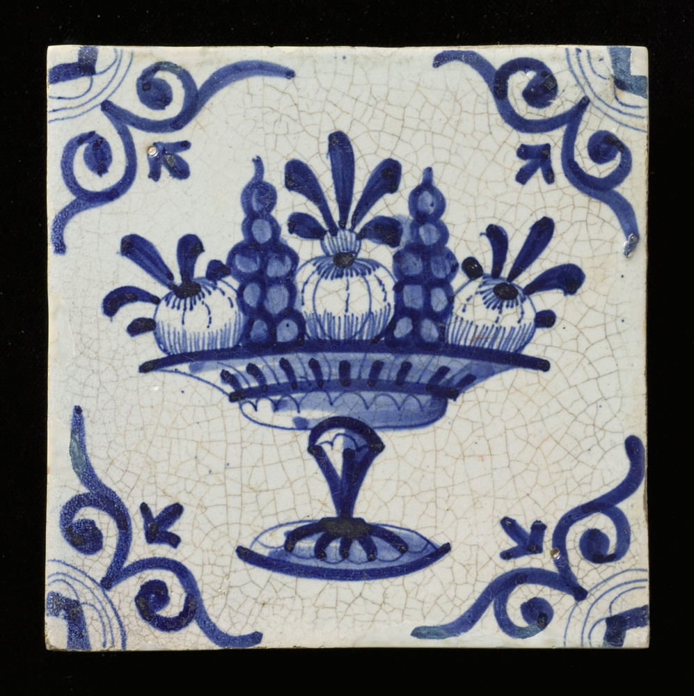 Tegel van keramiek, tinglazuur, voorstellende een bl...