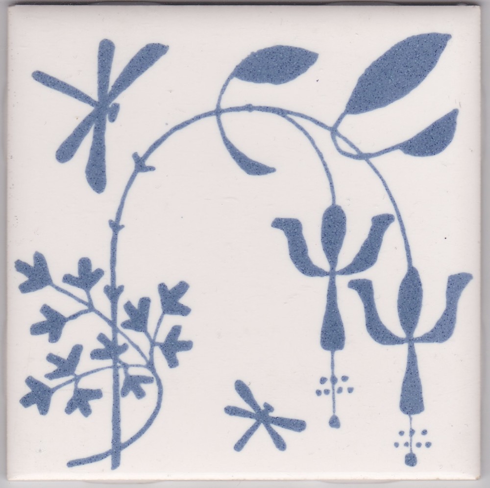Tegel in zeefdruk, met voorstelling: decor Fuchsia, ...
