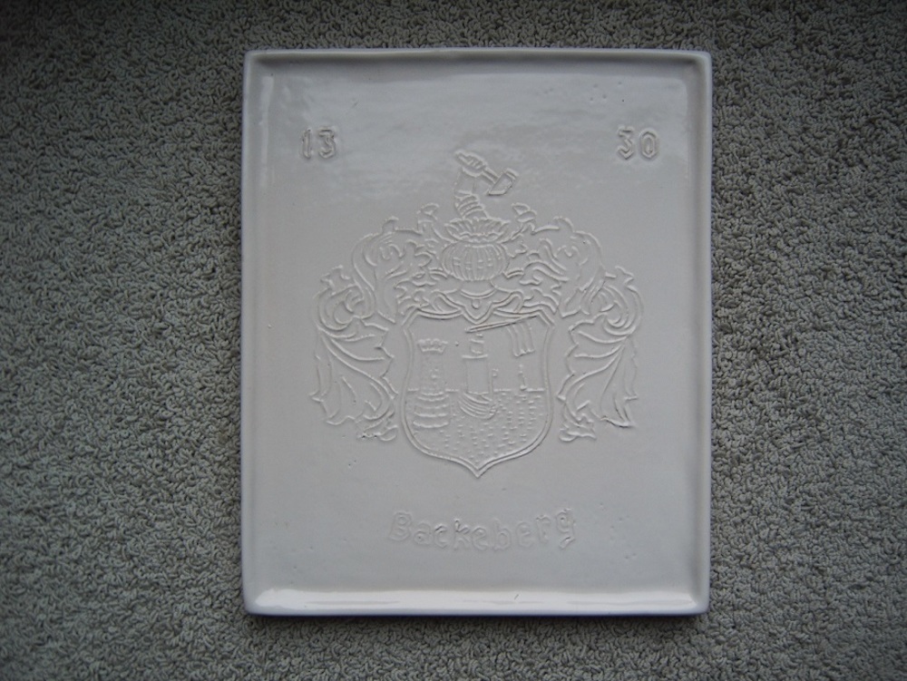 Tegel in reliëf, met voorstelling: wapen familie Bac...