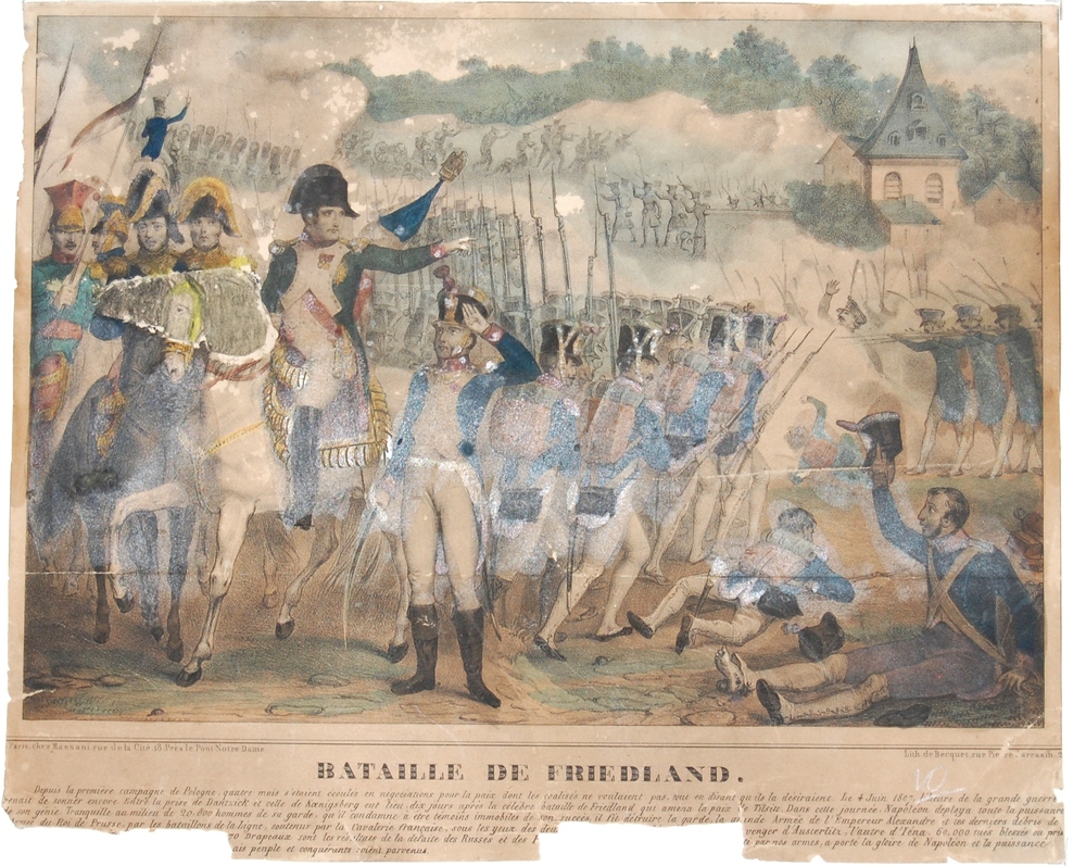 Gezicht op de slag bij Friedland met o.a. Napoleon d...