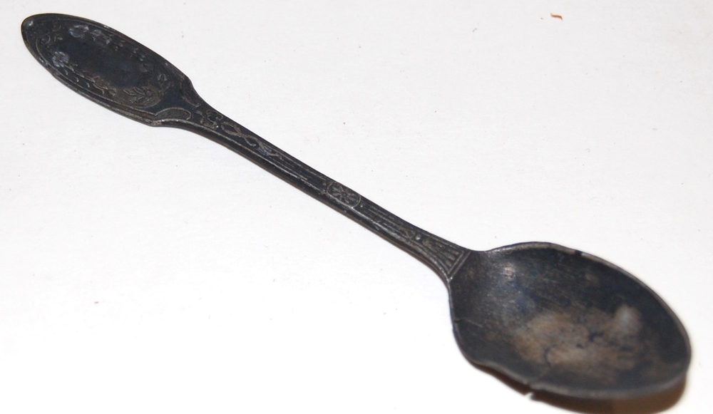 lepel voor de thee met ovalen bak en versierde steel...