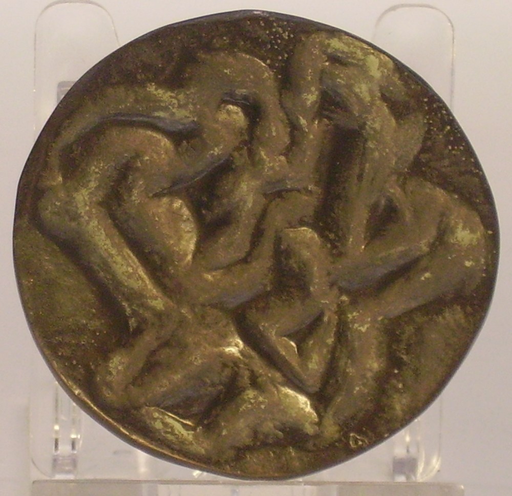 Serie van 5 bronzen penningen 'dansend figuur', gema...
