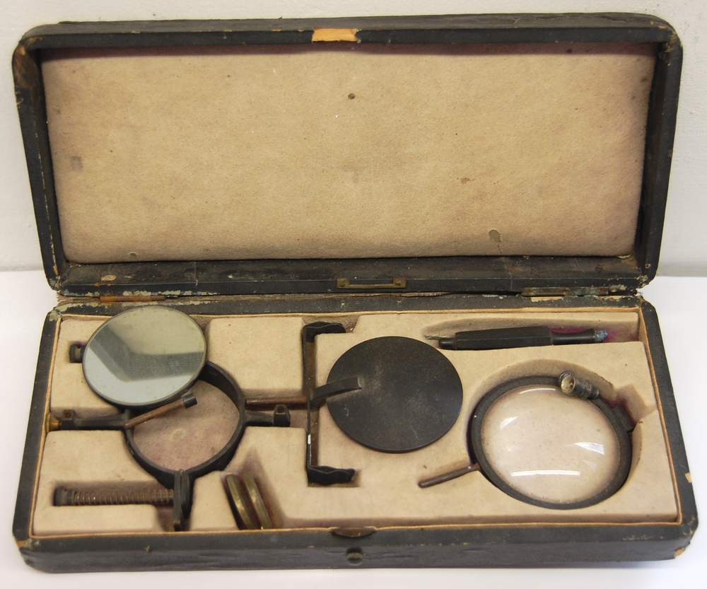 oogspiegel van koper en ijzer met spiegel, lens, kle...