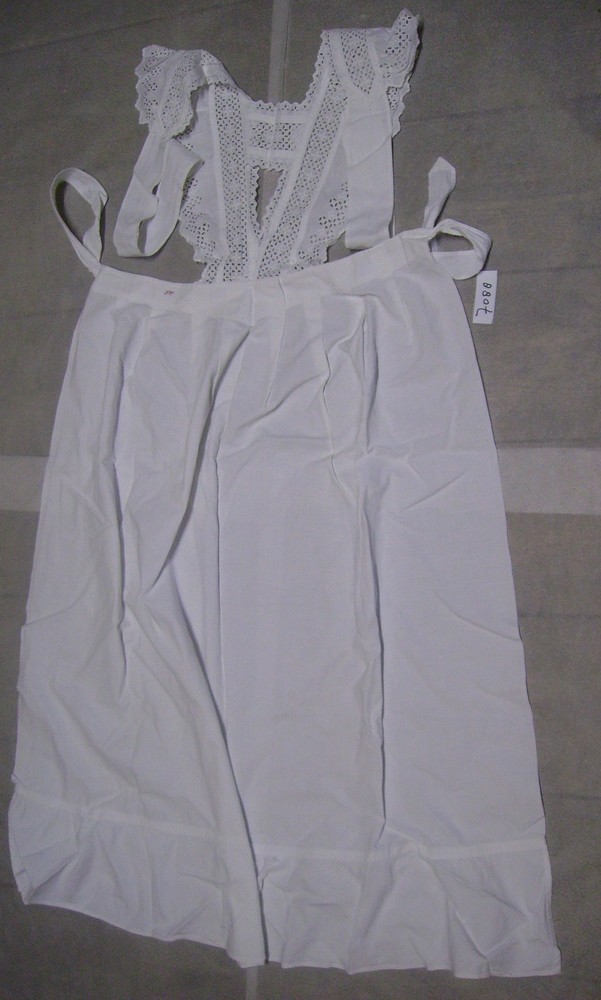 Witte schort van katoen eerste helft van de 20e eeuw.