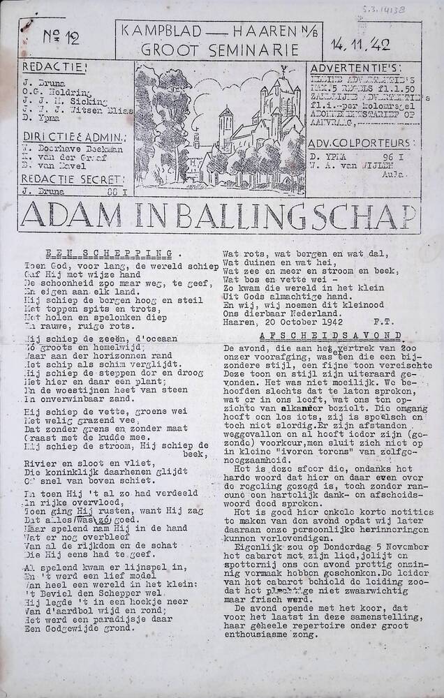 Adam in ballingschap, kampblad Groot Seminarie Haare...