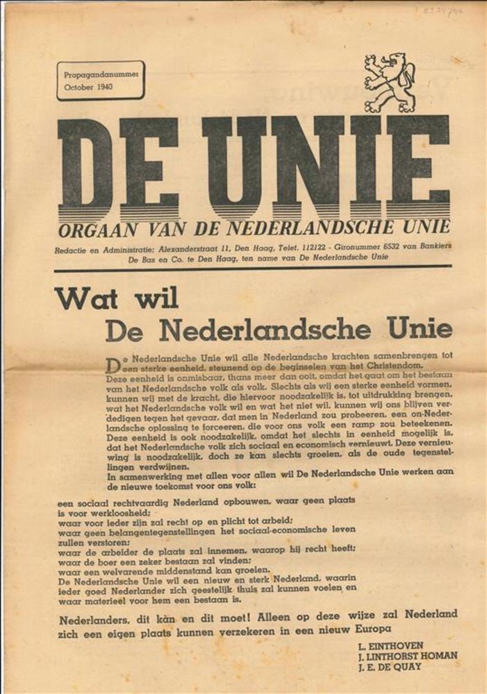 De Unie, Orgaan van de Nederlandsche Unie, oktober 1940