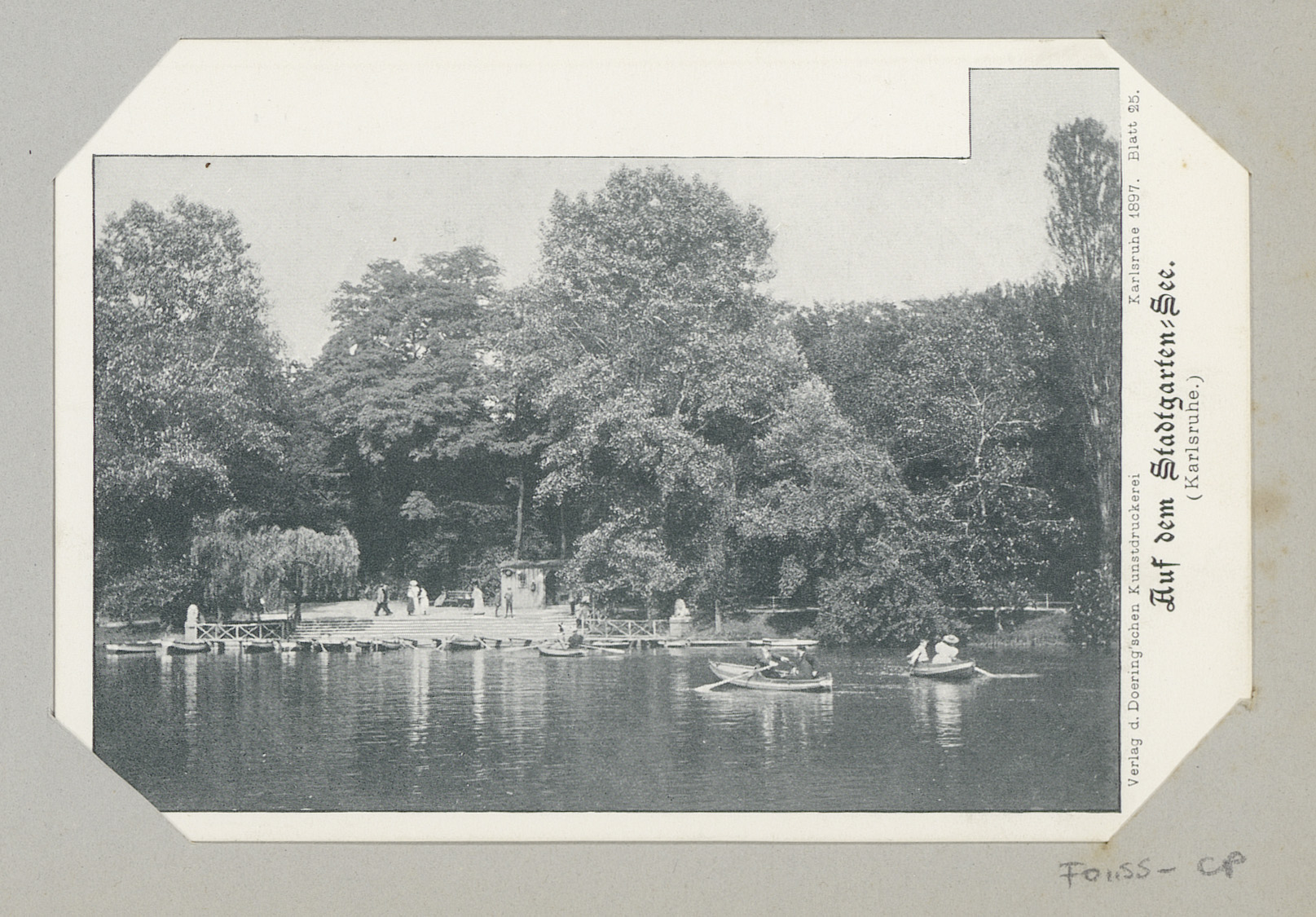 Gezicht op een stadsvijver moet roeiboten te Karlsruhe