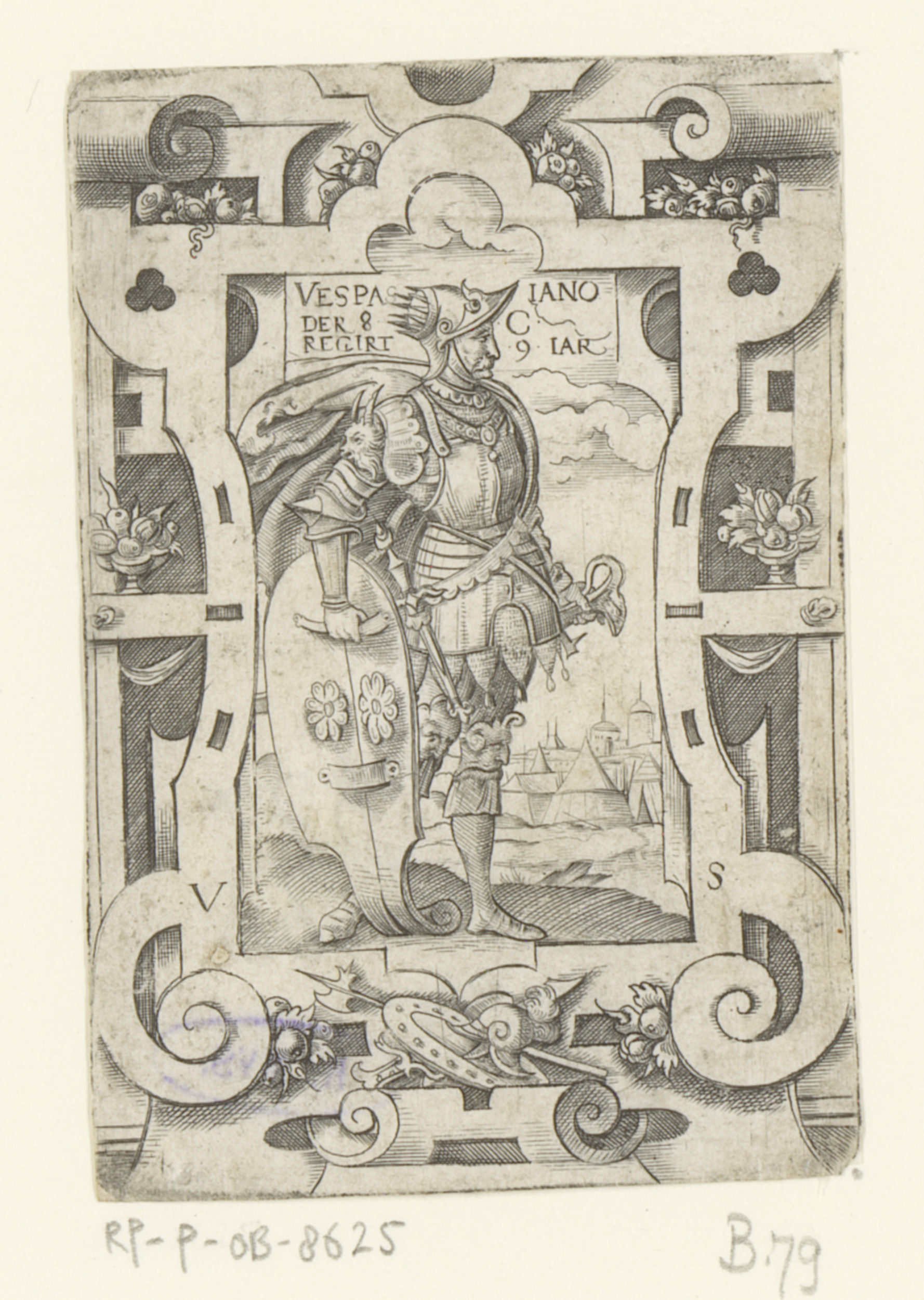 Keizer Vespasianus in rolwerk omlijsting