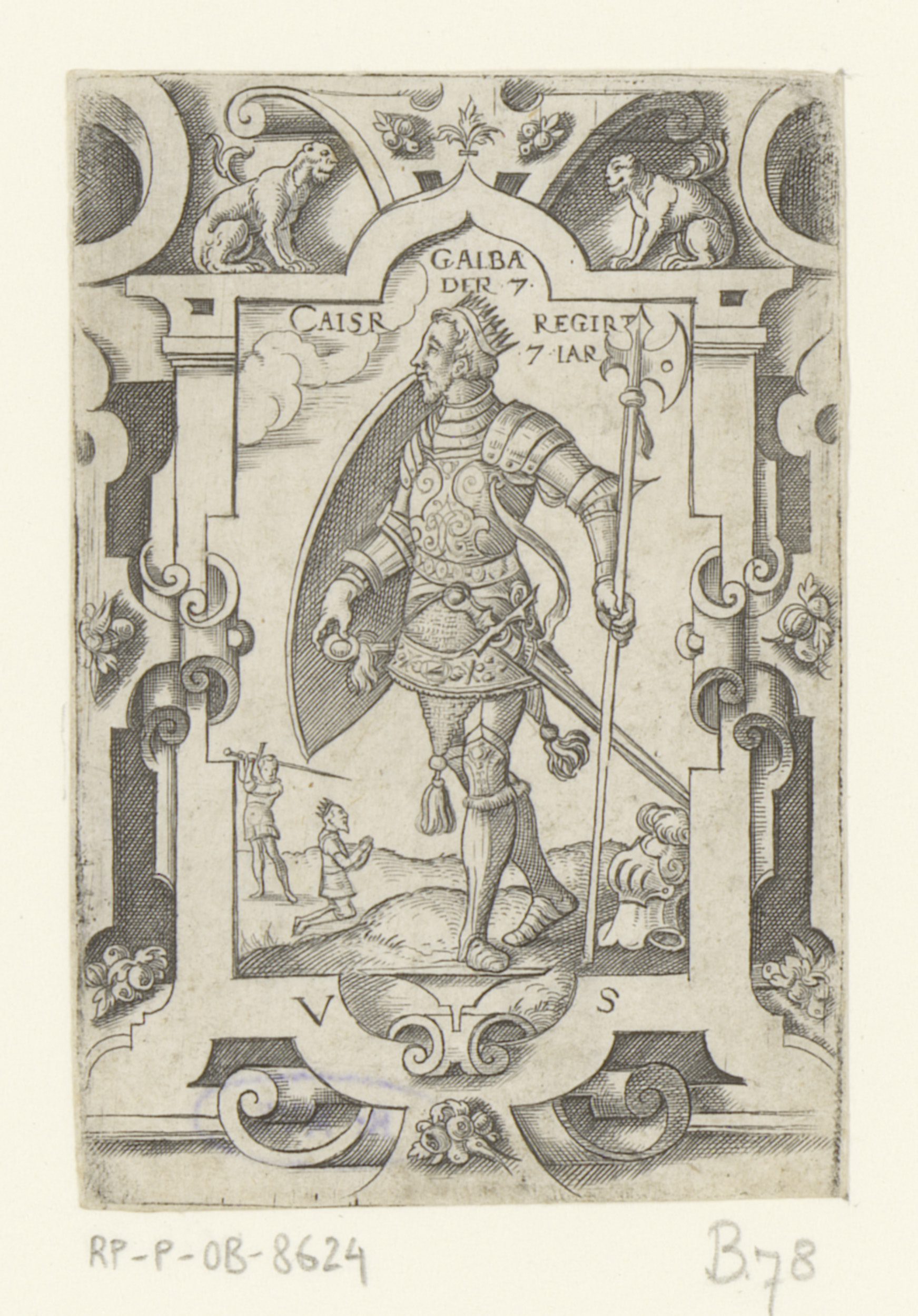 Keizer Galba in rolwerk omlijsting