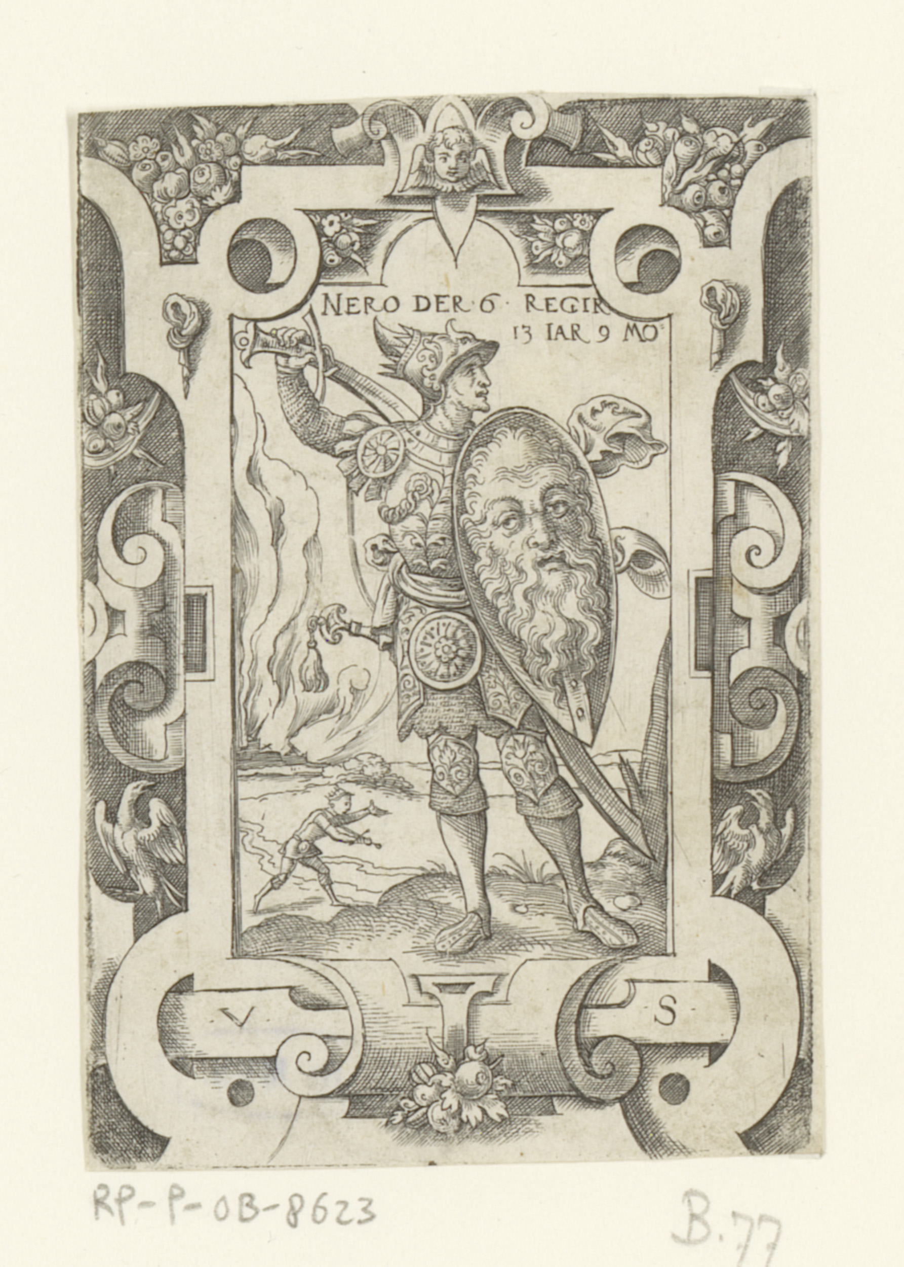 Keizer Nero in rolwerk omlijsting