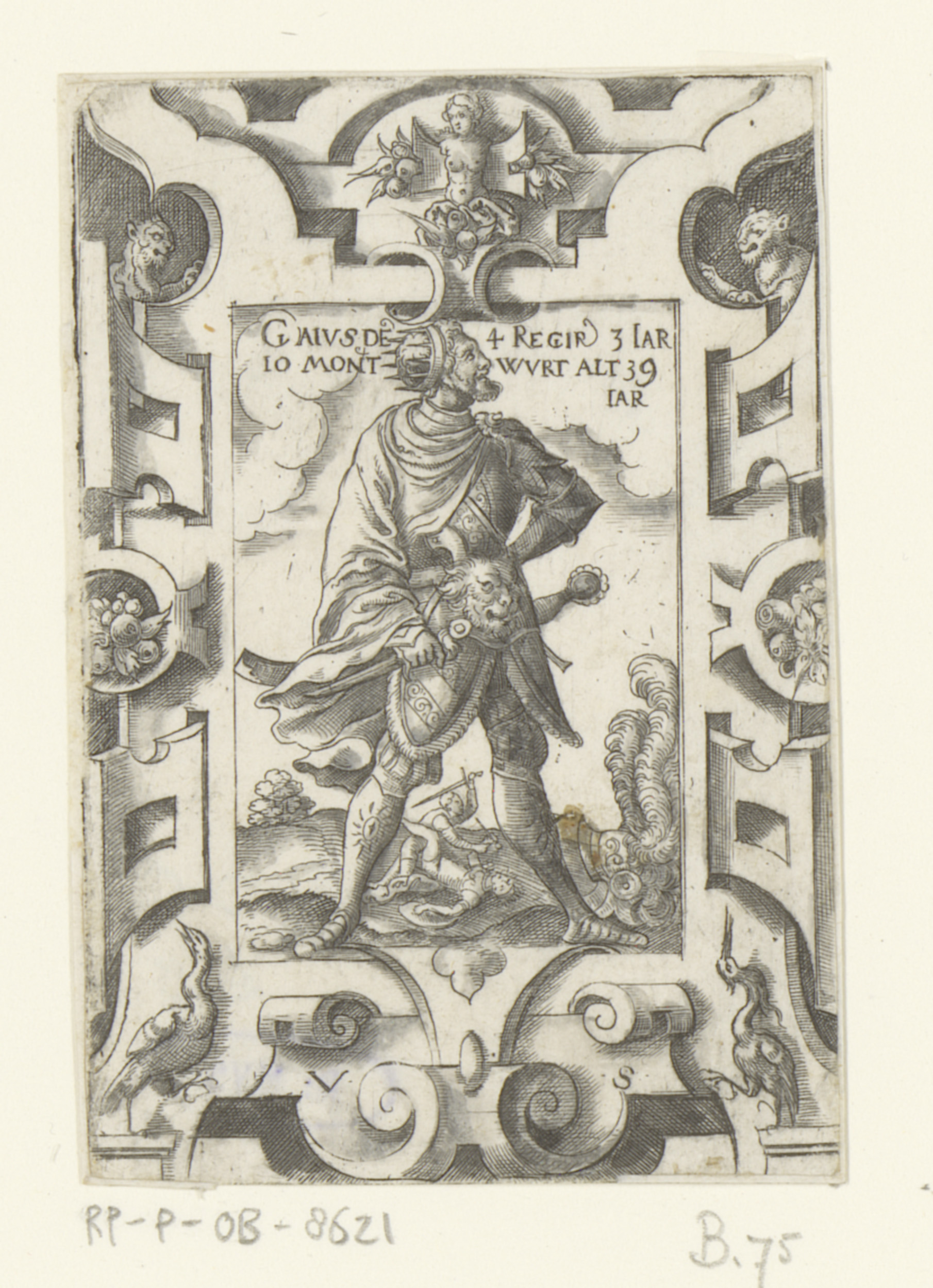 Keizer Caligula in rolwerk omlijsting