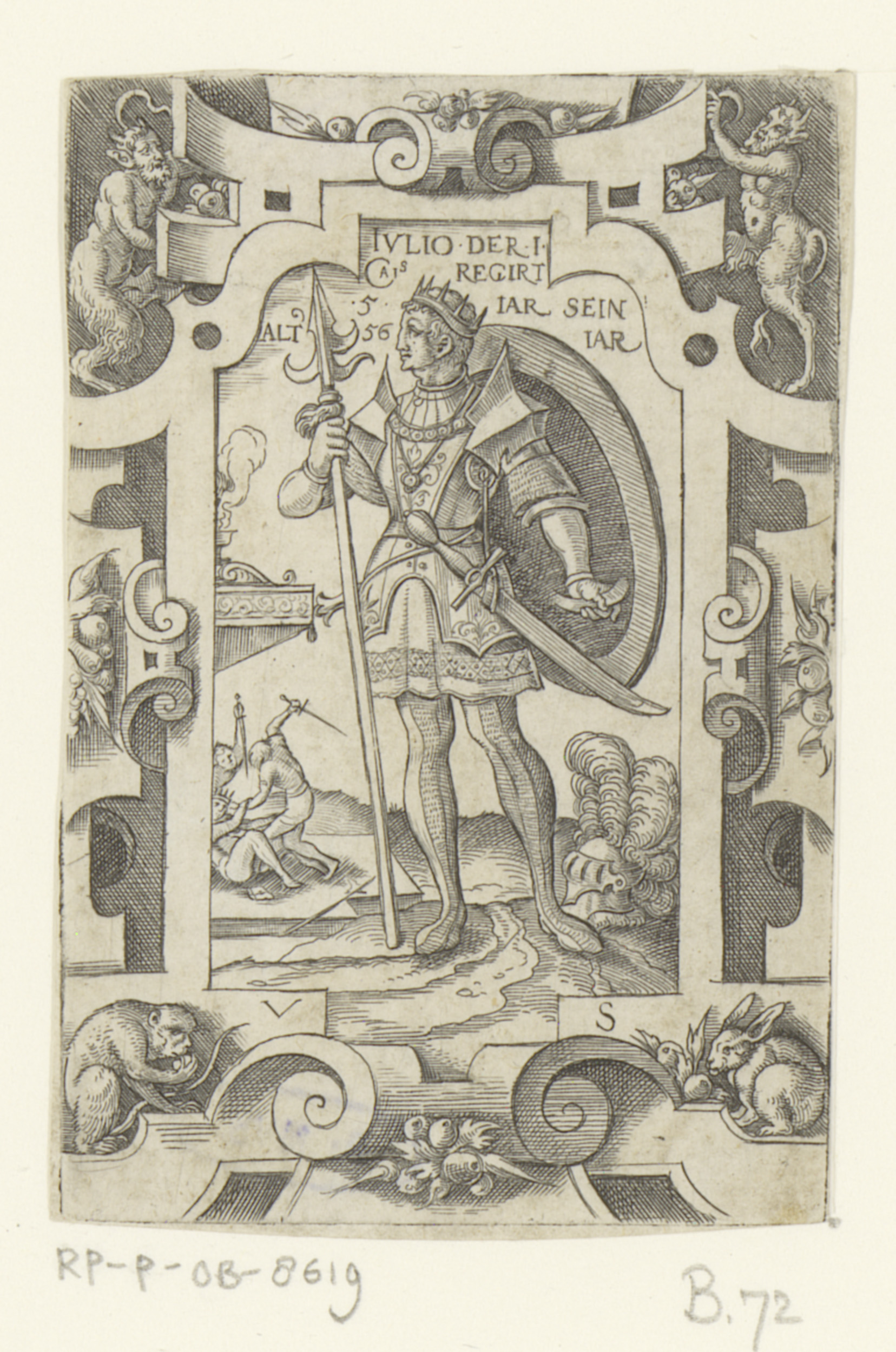 Keizer Julius Caesar in rolwerk omlijsting