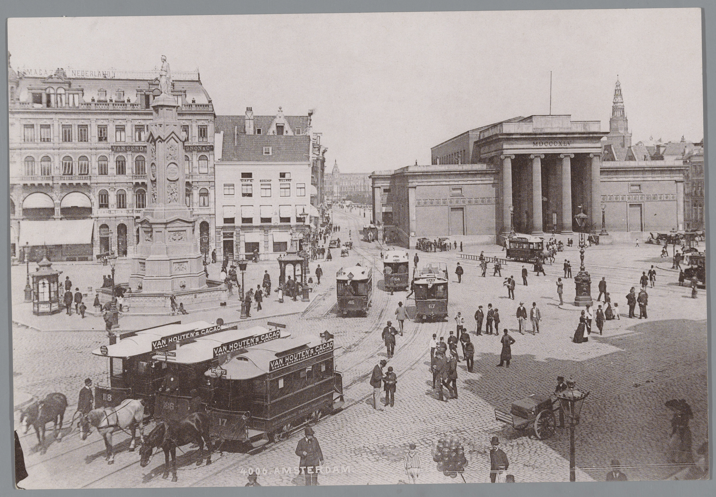 Gezicht op de Dam en de Beurs van Zocher te Amsterdam