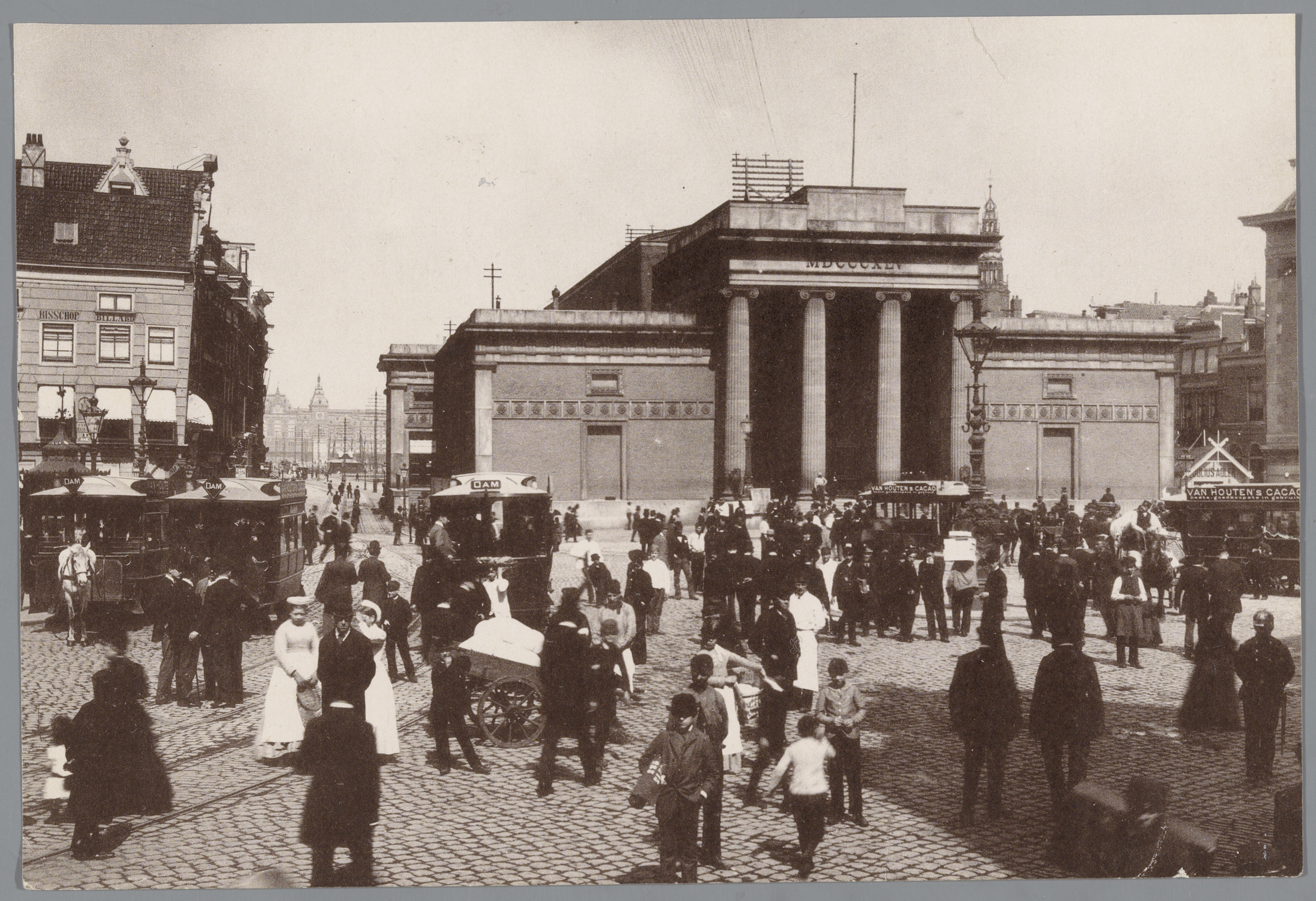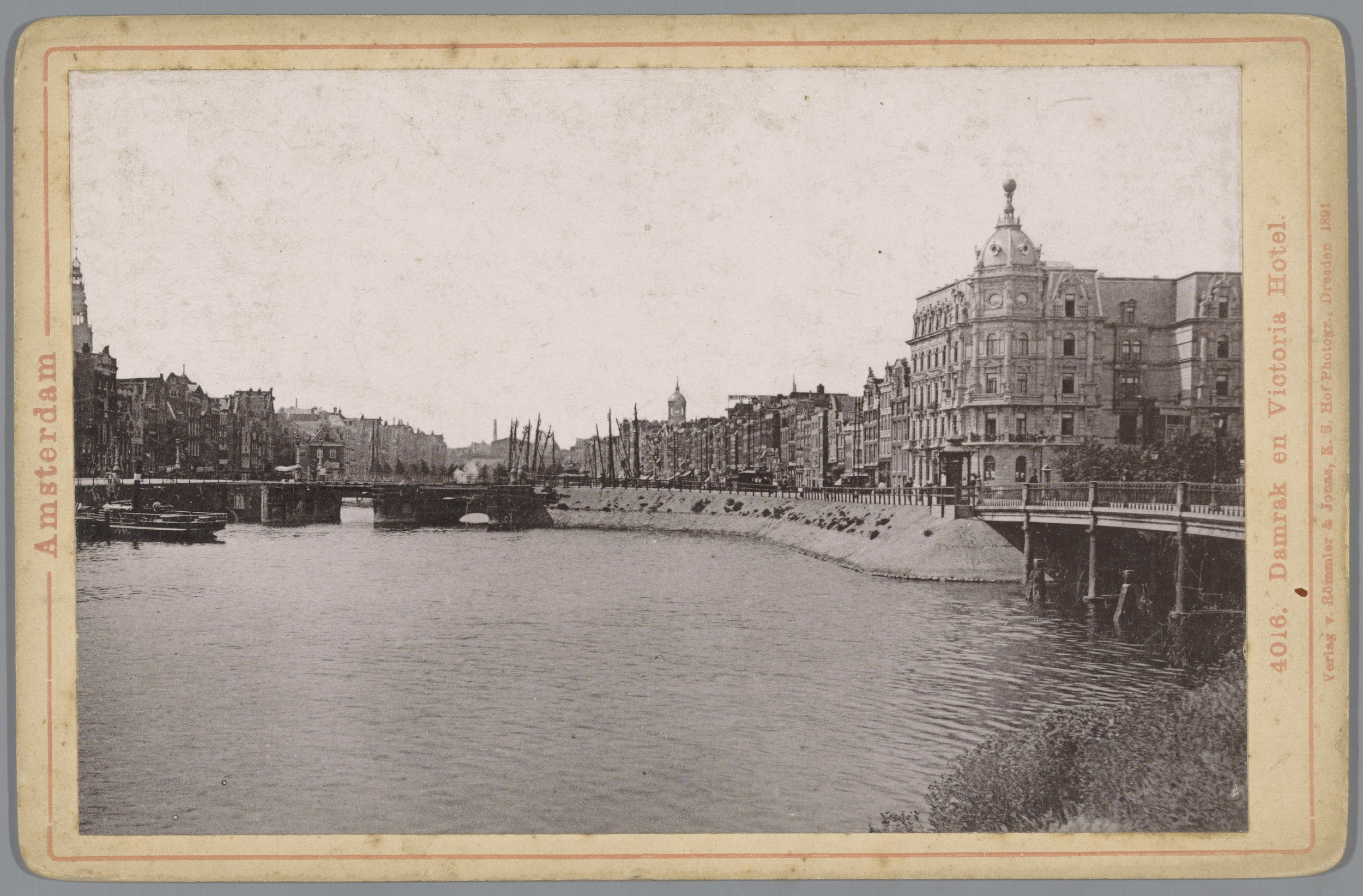 Gezicht op het Damrak en Victoria Hotel in Amsterdam