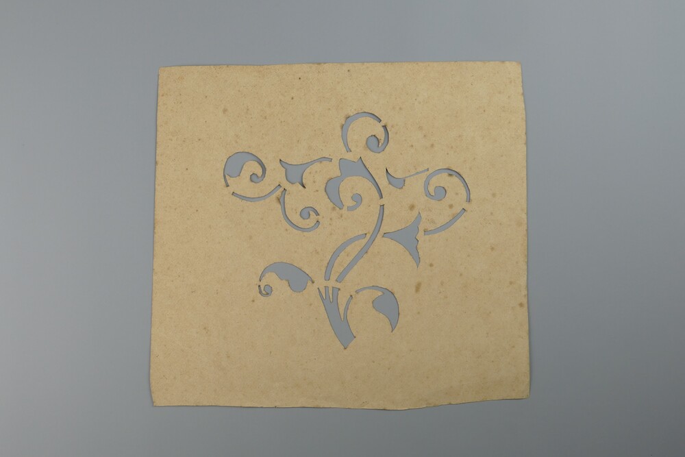 Sjabloon in papier met uitsnede van floraal motief.