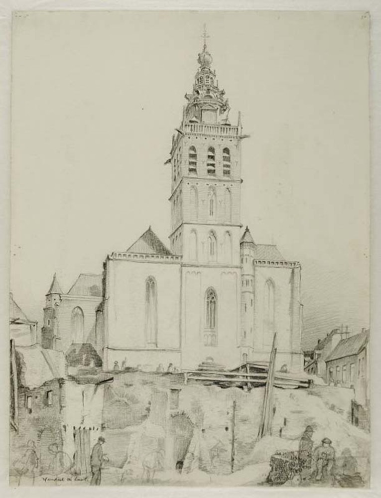 Westzijde Stevenskerk met werkzaamheden op de Ganzen...