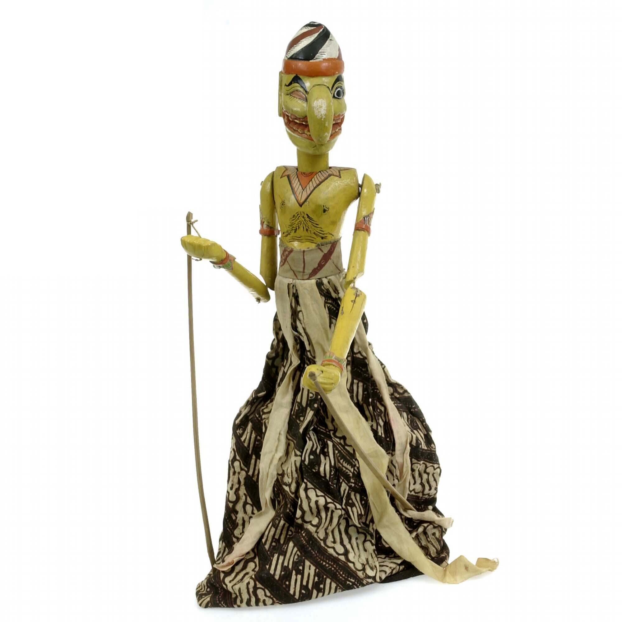 Houten wajangpop, voorstellende Petruk