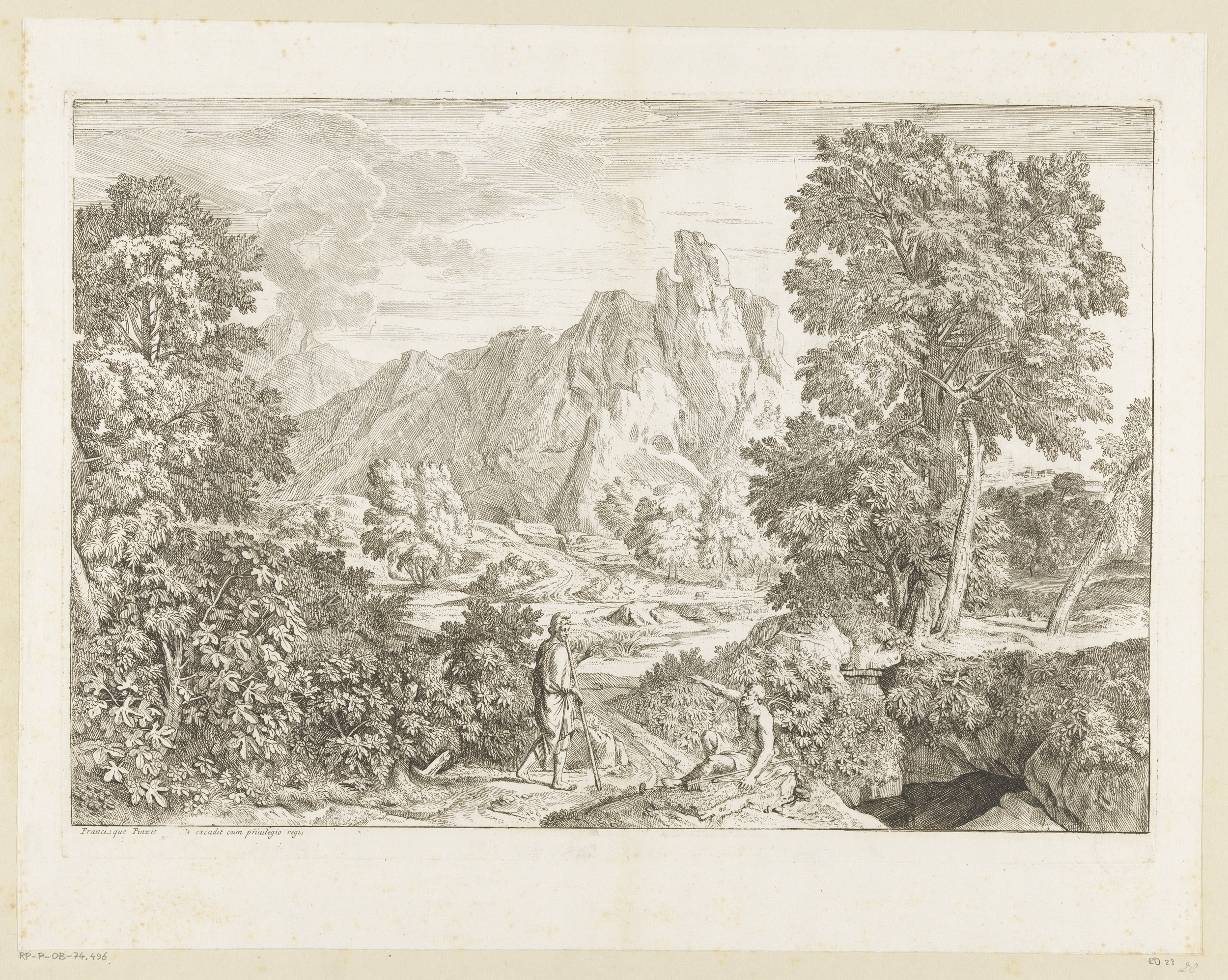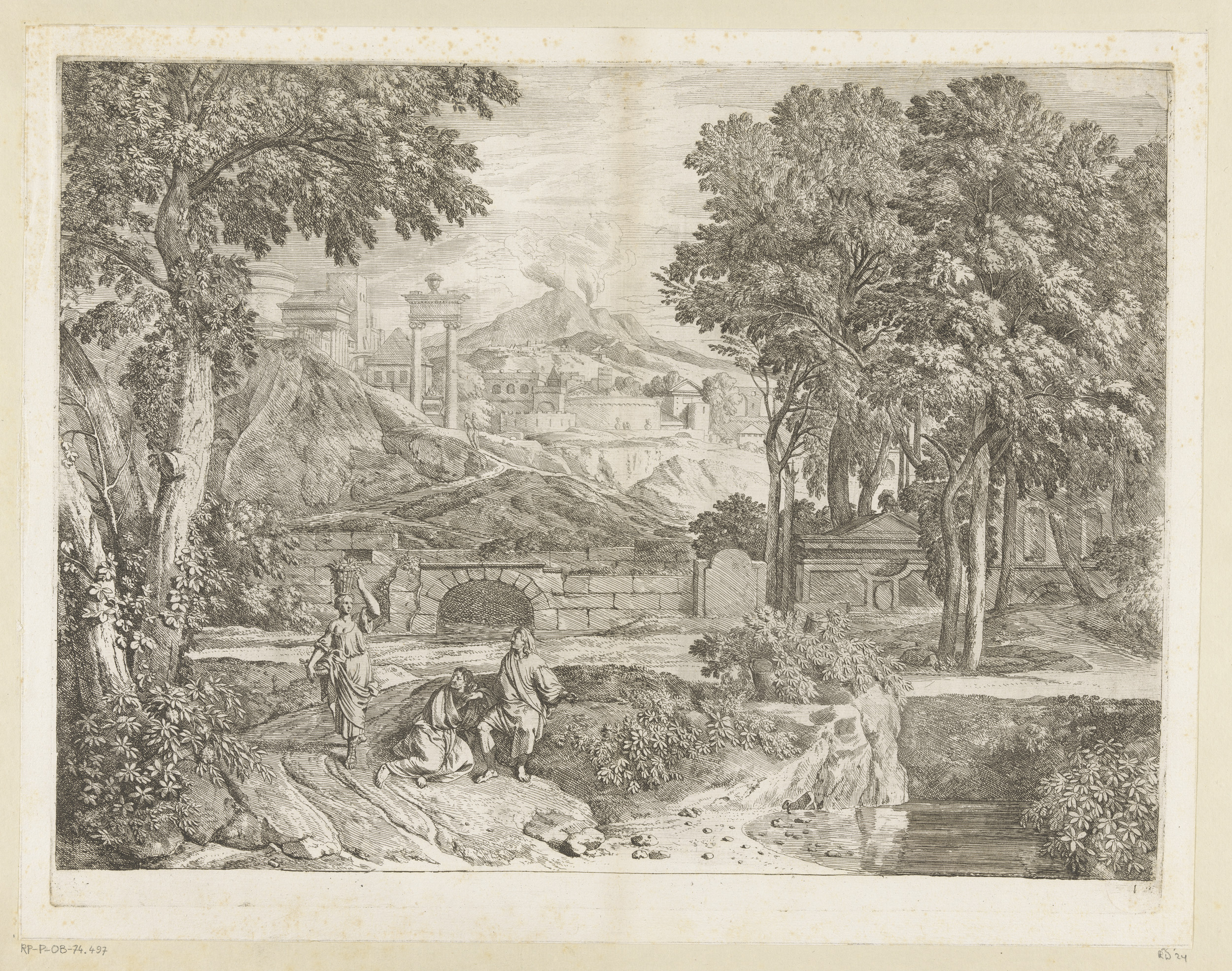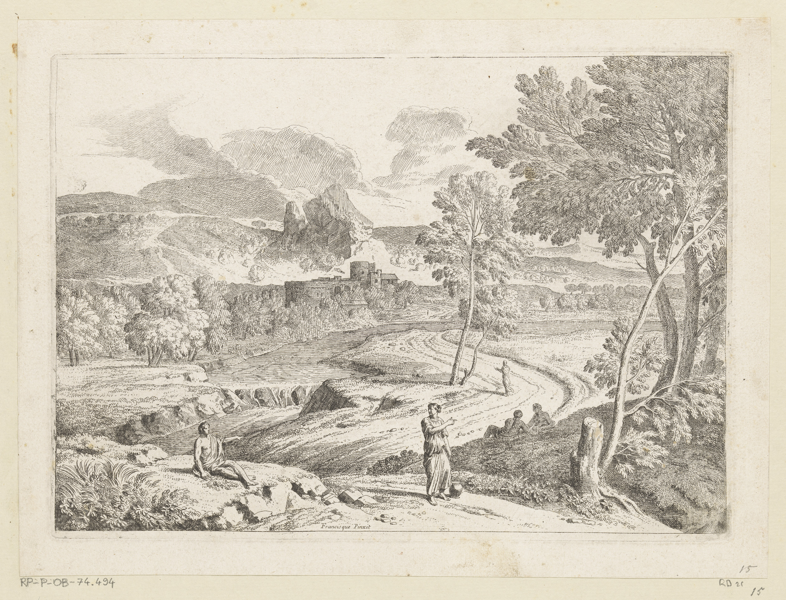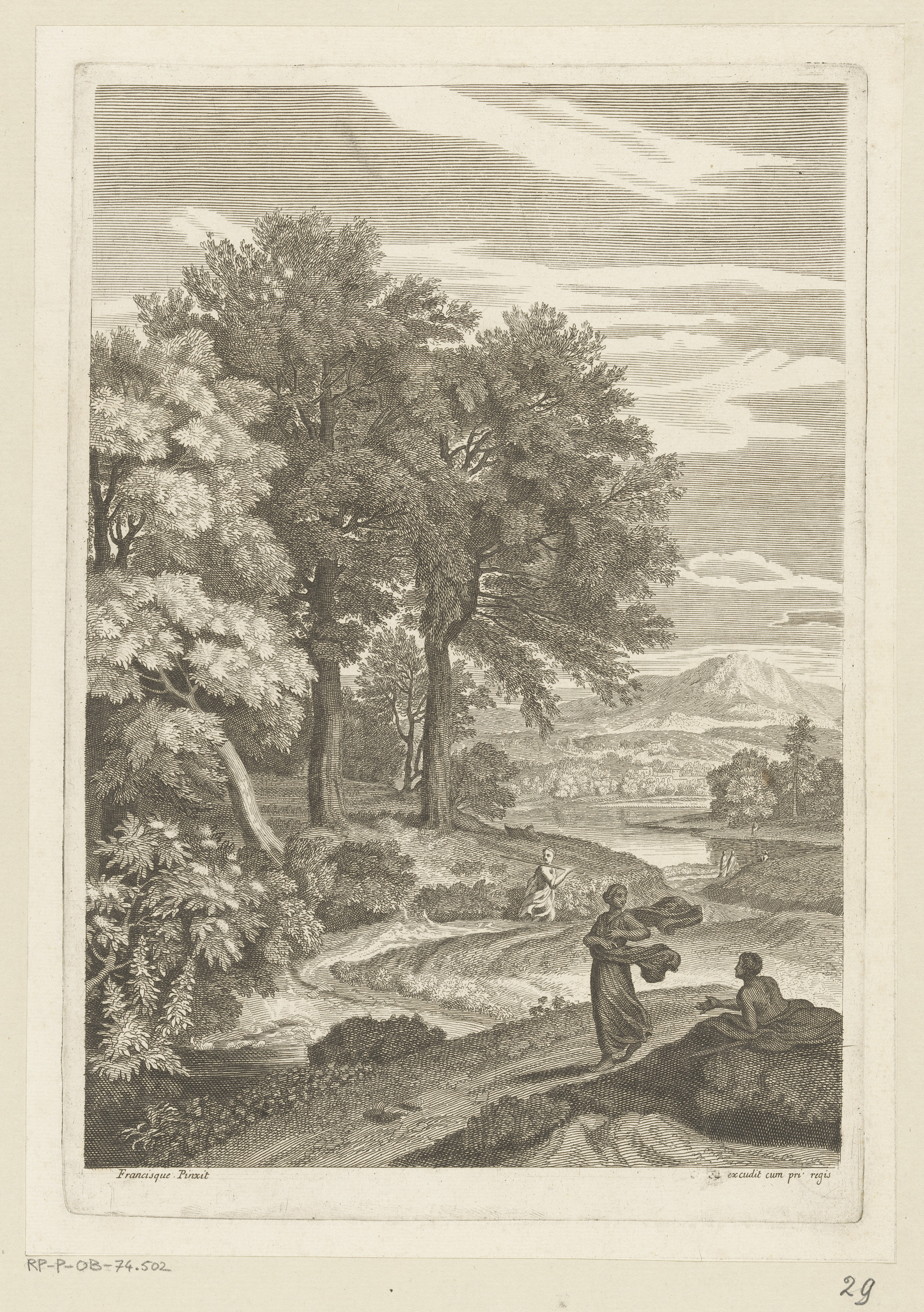 Arcadisch landschap met twee mannen en een fruit-dra...
