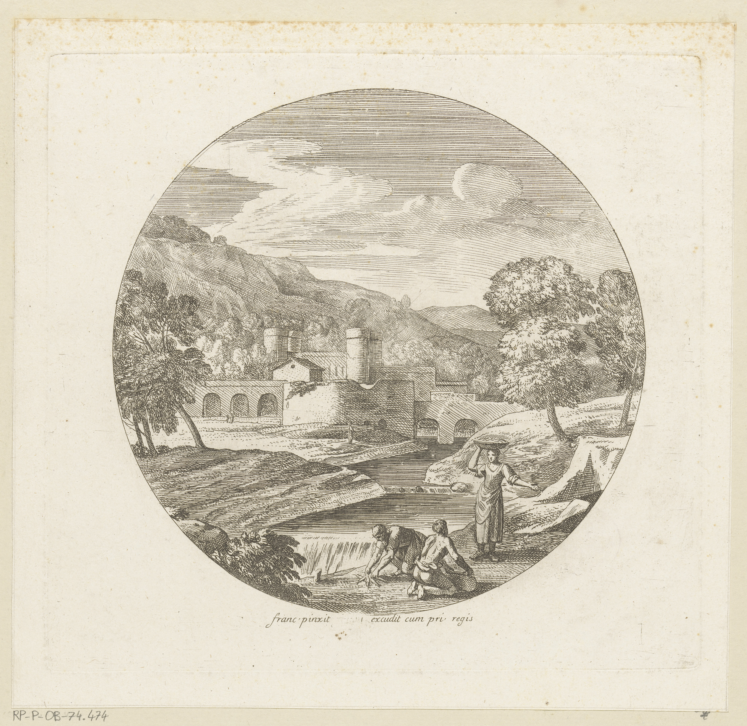 Arcadisch berglandschap met badende figuren bij een ...