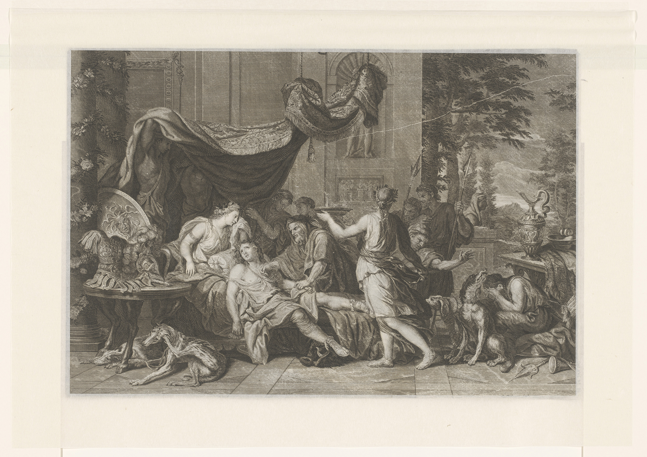 Liggende Hercules omringd door treurende figuren