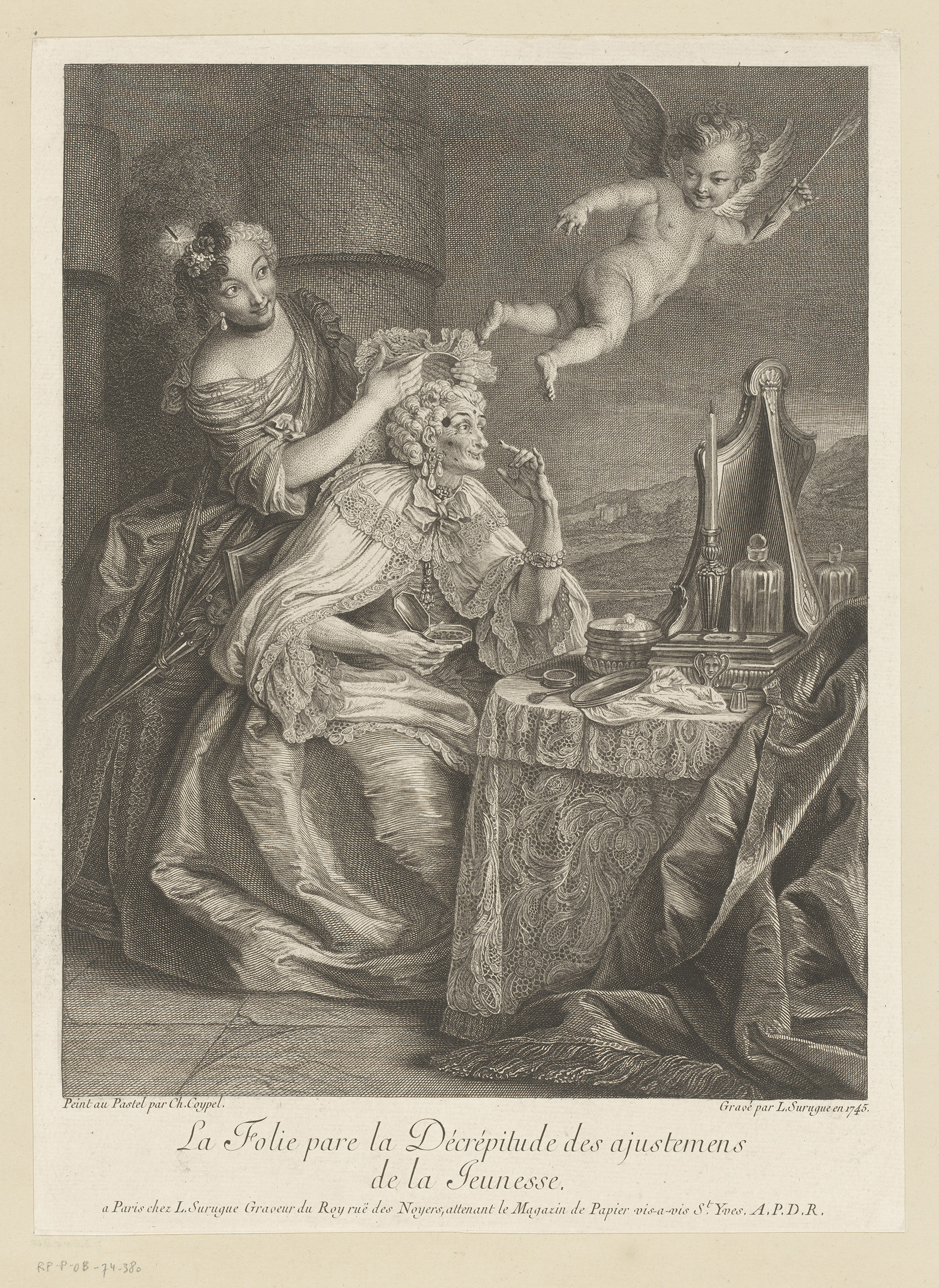 Hofdame helpt oude dame bij het camoufleren van oude...