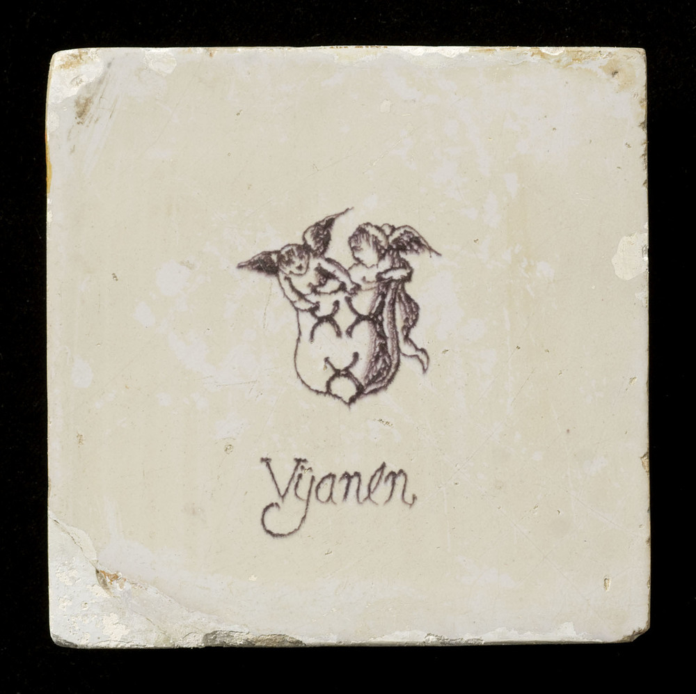 Tegel van keramiek met tinglazuur, voorstellende: wa...