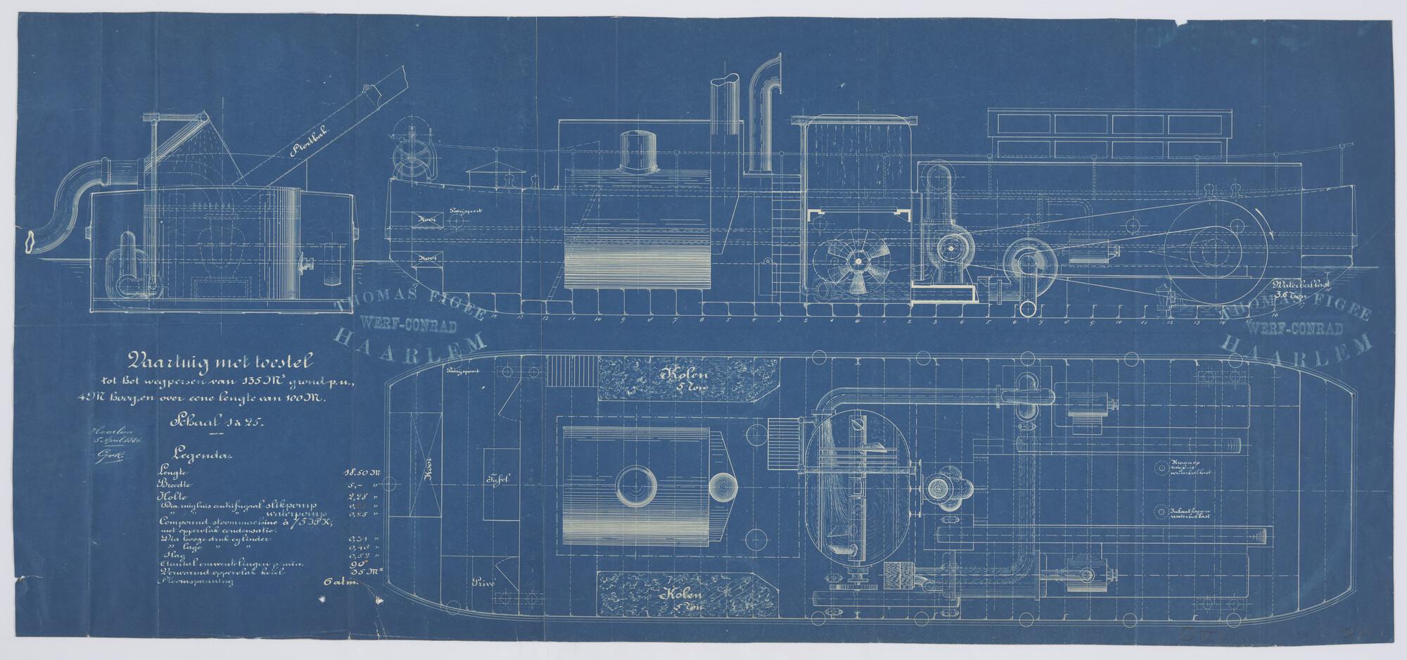 Lijnenplan van de stoomsleepboot Pieter Boele (1893)