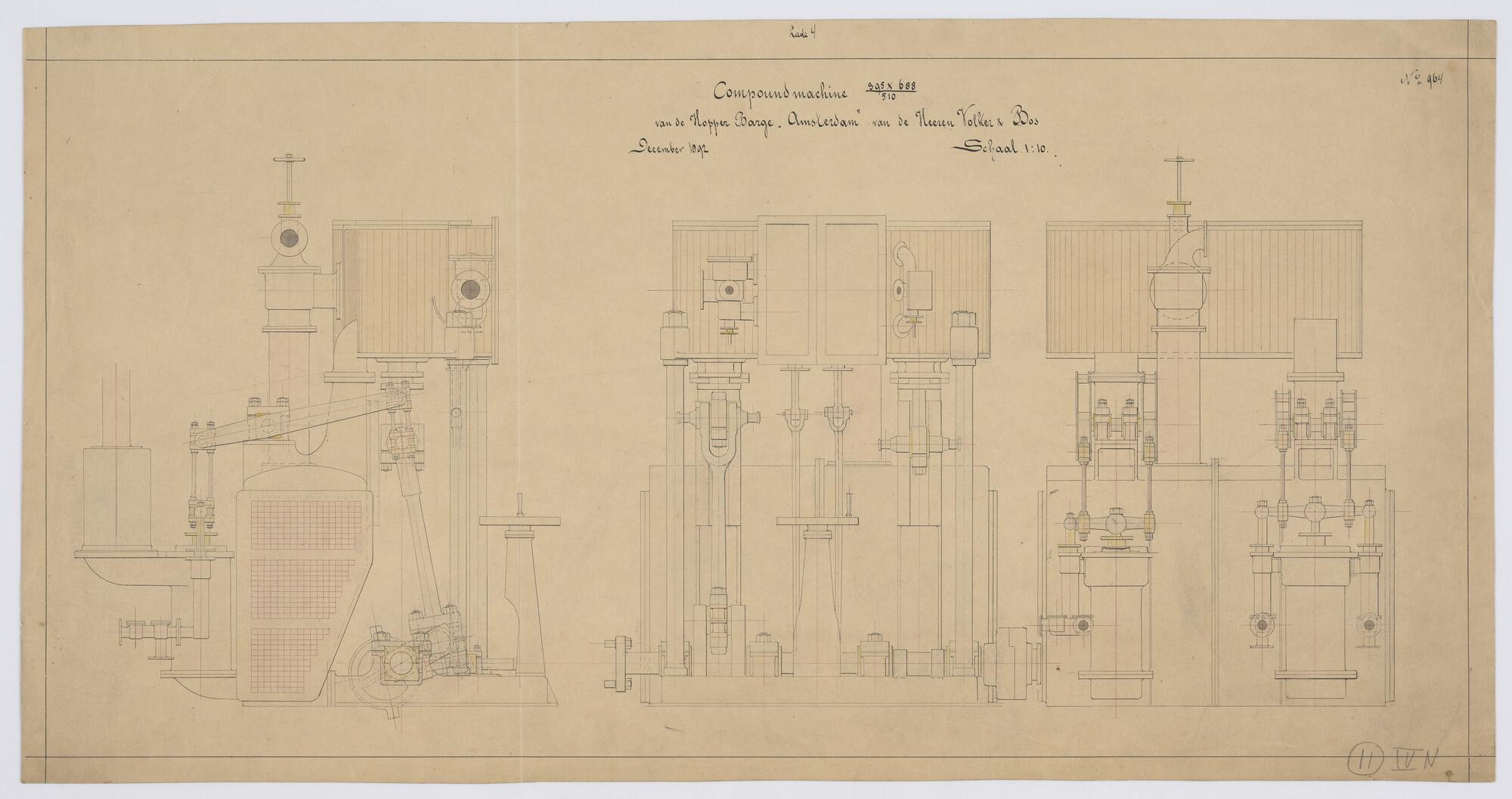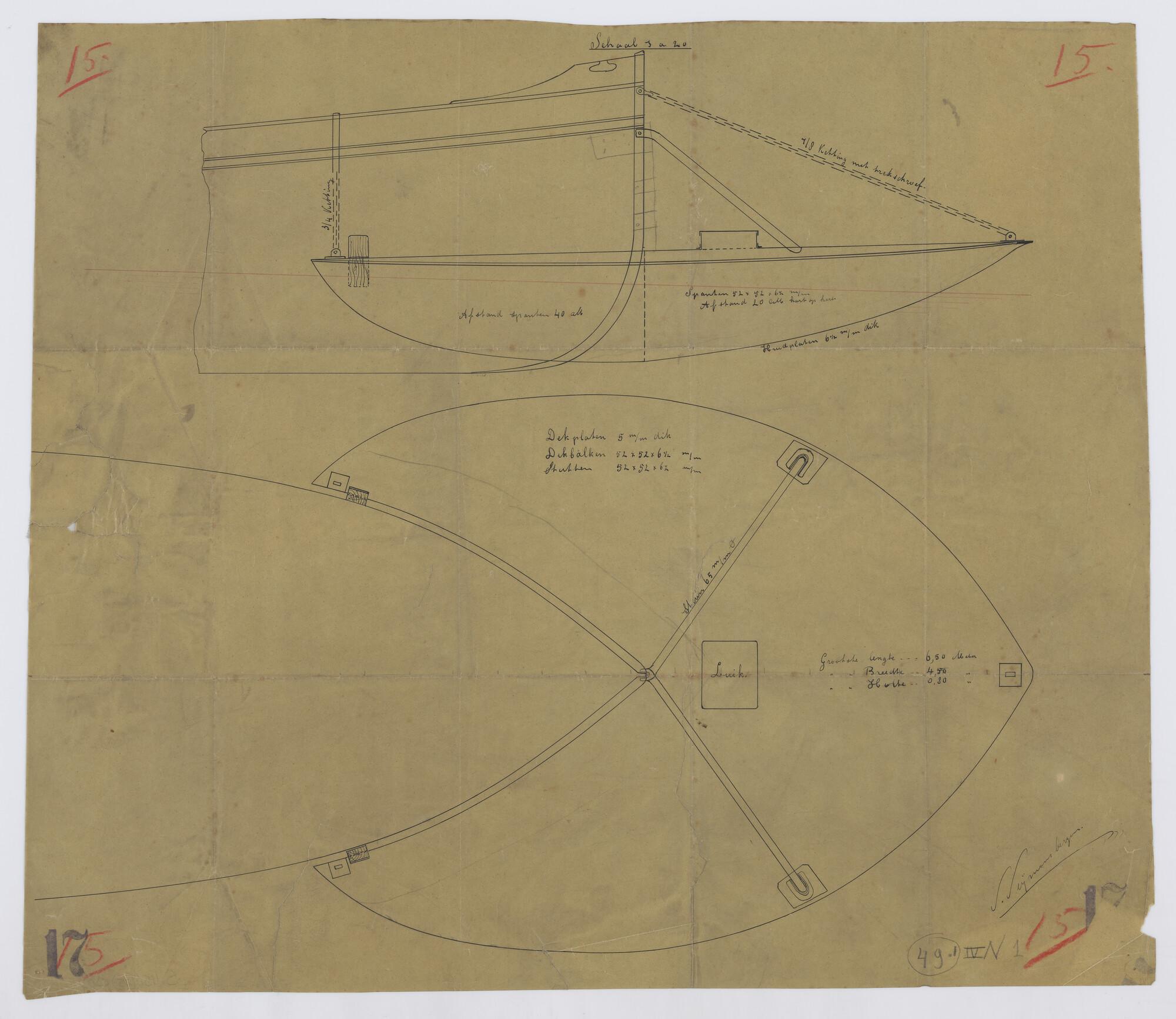 Verticale langsdoorsnede en bovenaanzicht stoompont ...
