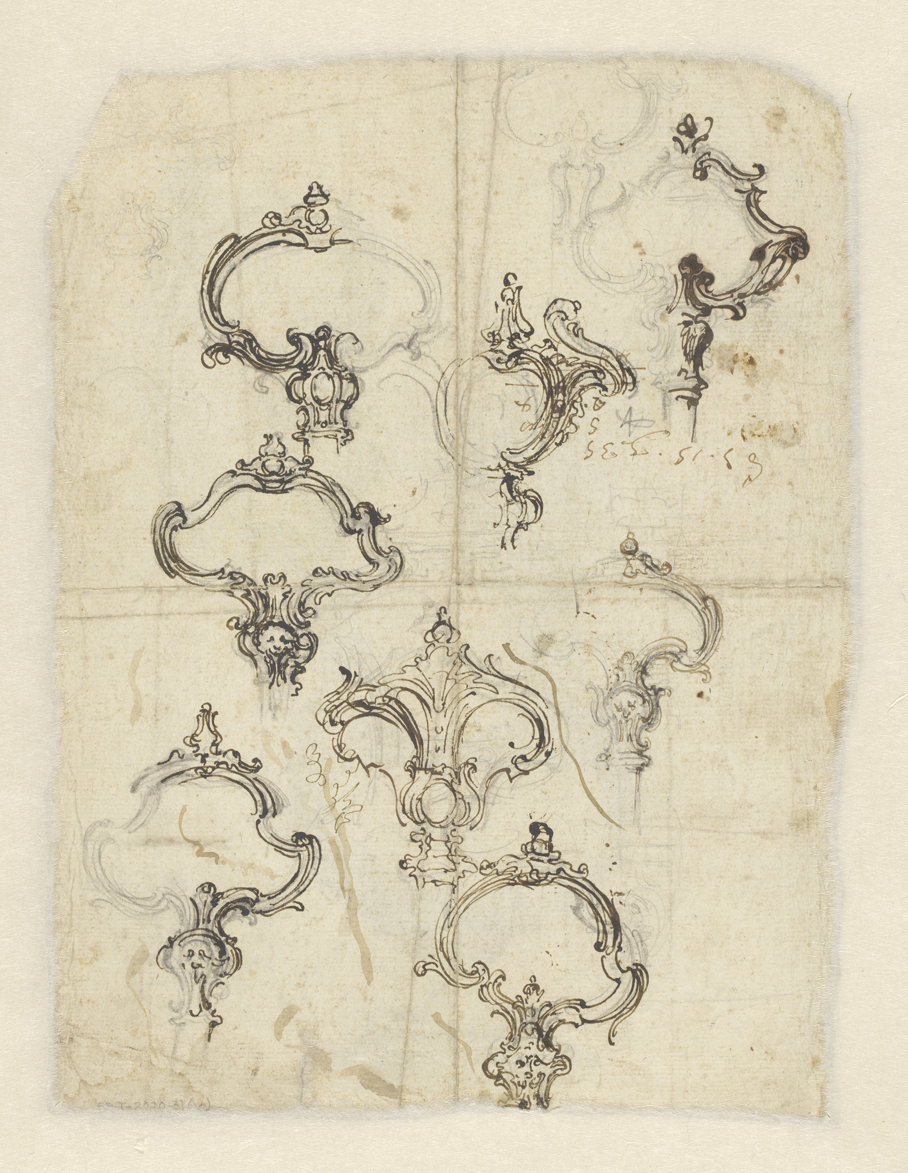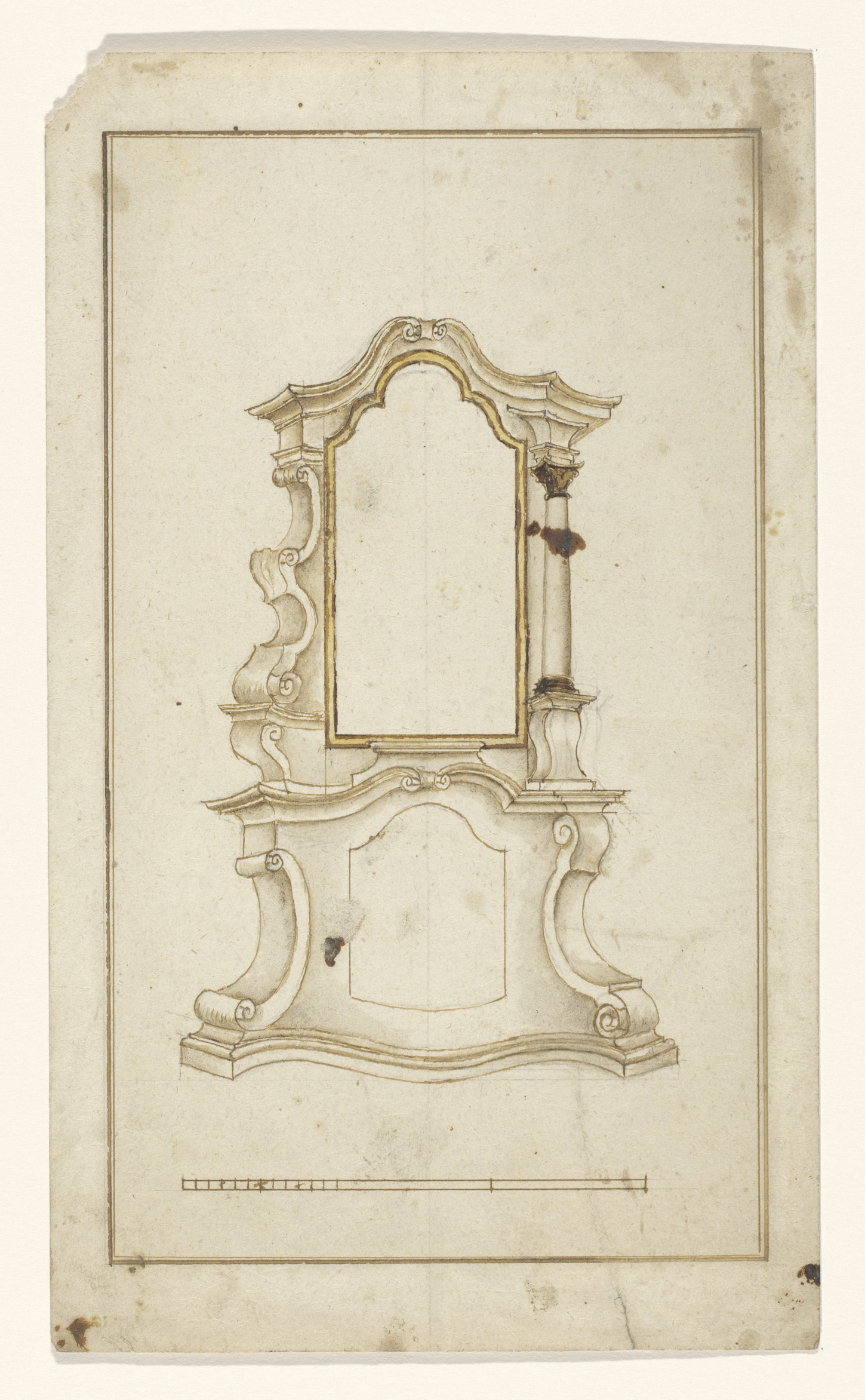 Bekroning van een lijst, met een zeegodje dat twee d...