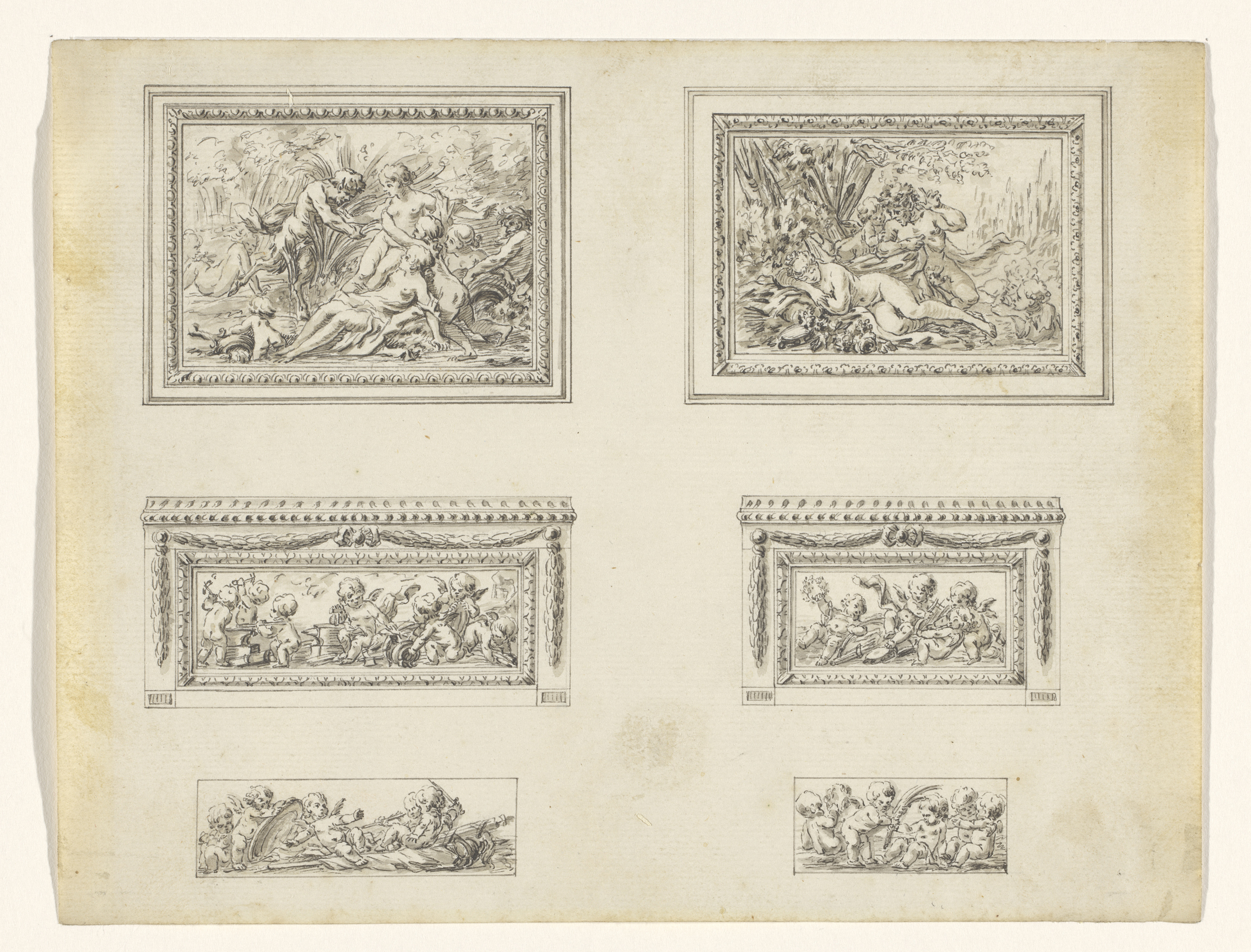 Ontwerp voor een snuifdoos, met de figuratieve scène...