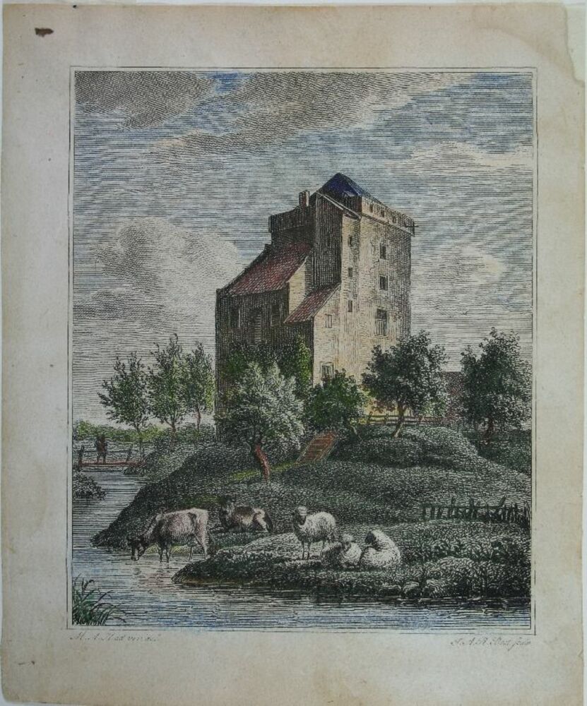 Centsprent met drie gekleurde prentjes ter illustrat...