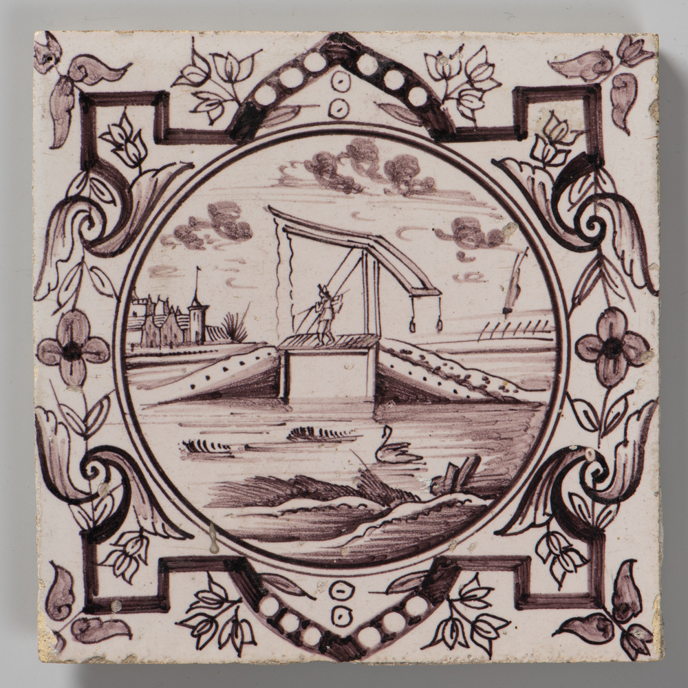 Tegel van keramiek, tinglazuur, voorstellende een in...
