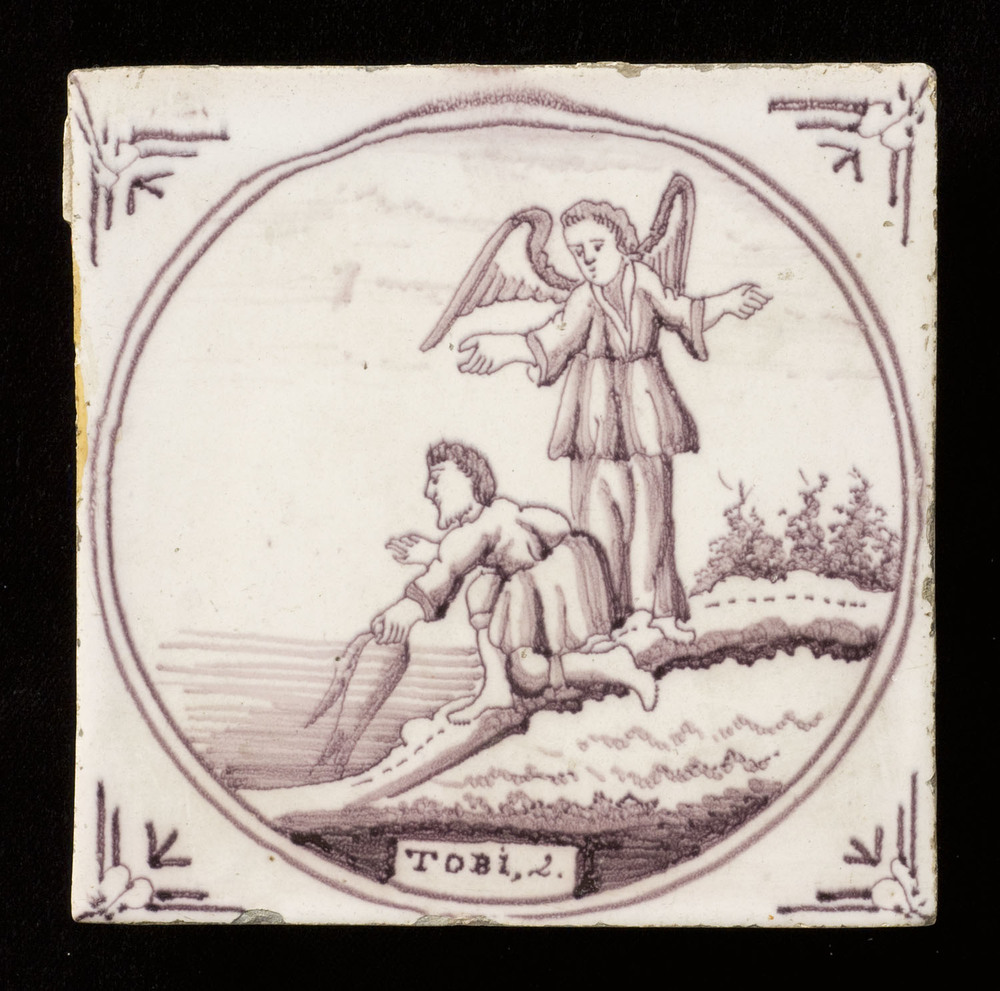 Tegel van keramiek met tinglazuur, voorstellende: Je...
