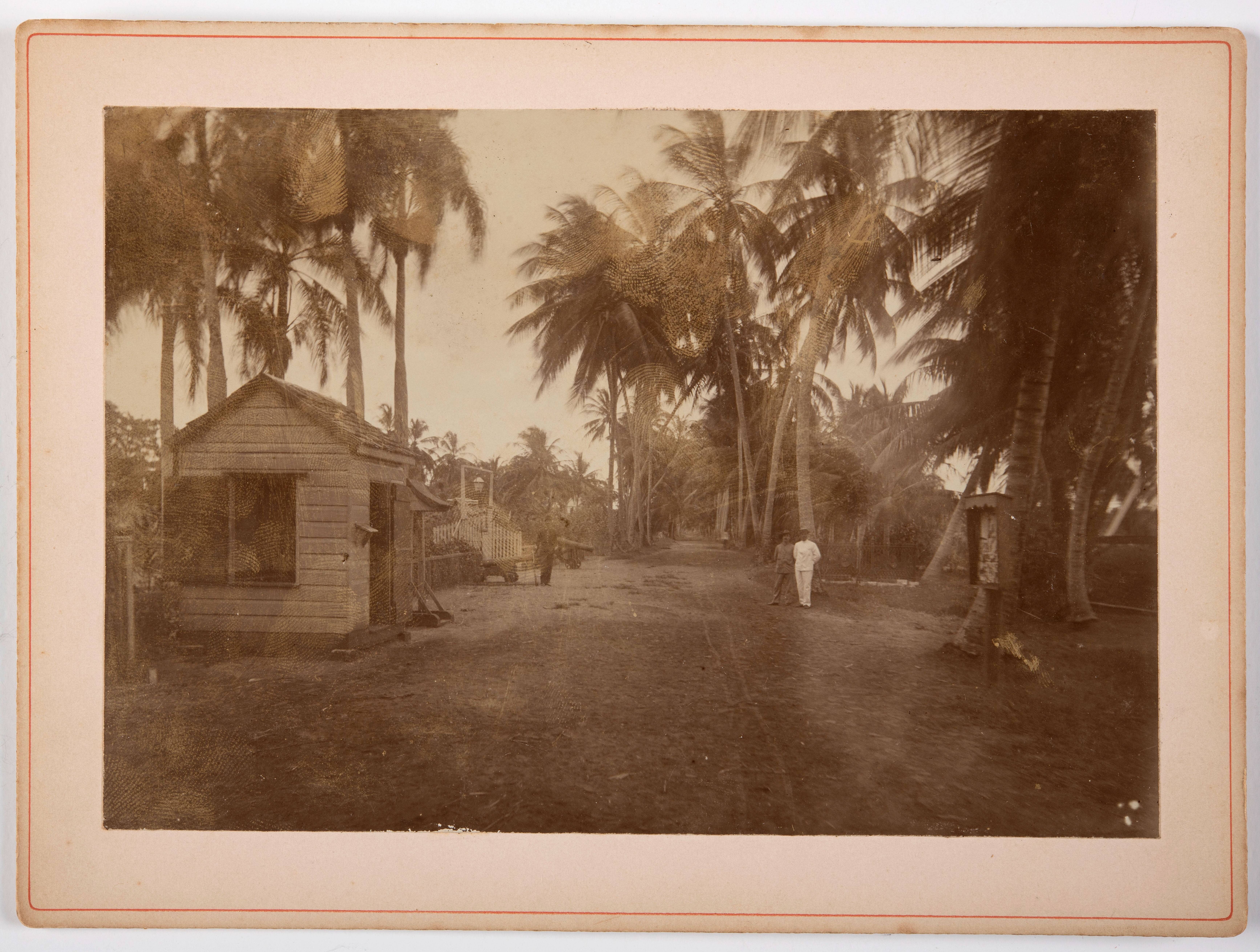 Voetgangers in de Cocospalmenlaan in Nickerie, Suriname