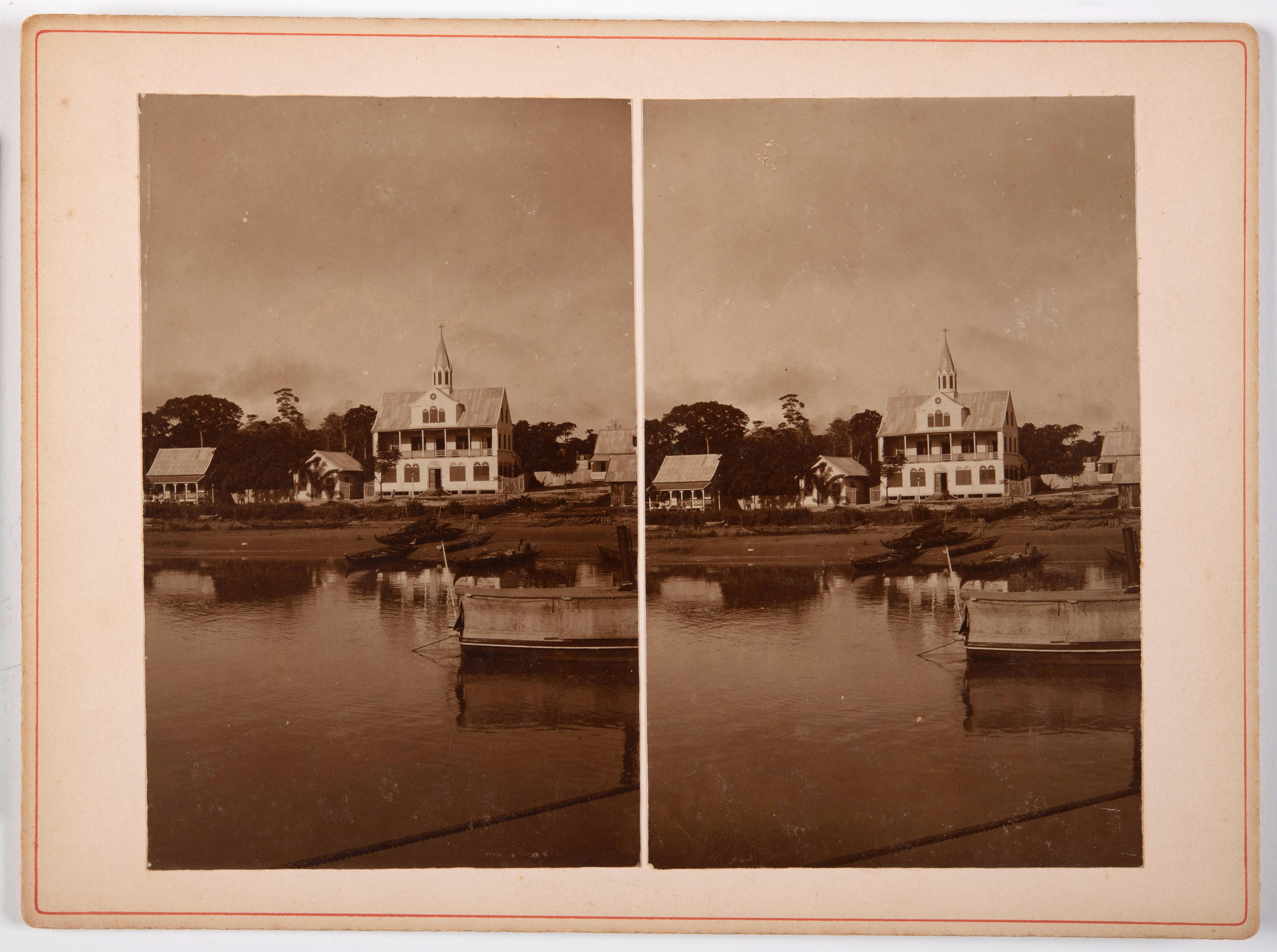 Paramaribo gezien vanaf de platte brug over de Surin...