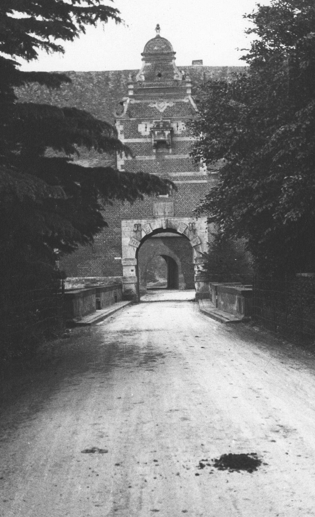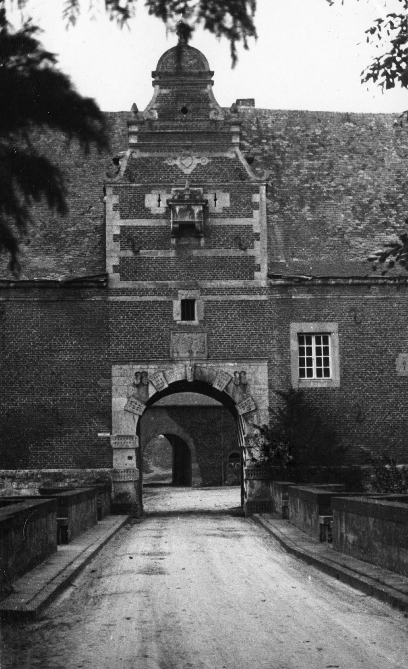 Toegangspoort van kasteel Mheer, Mheer, 1937 (zwart-...